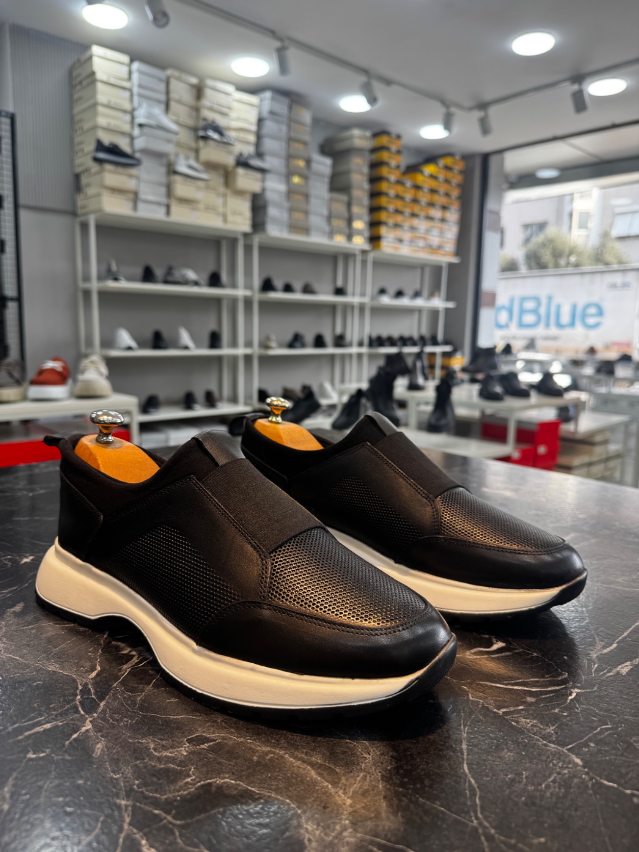 MirgeShoes Siyah Bantlı Erkek Casual Ayakkabı İçi Dışı Hakiki Deri Rahat Taban MRG010602562