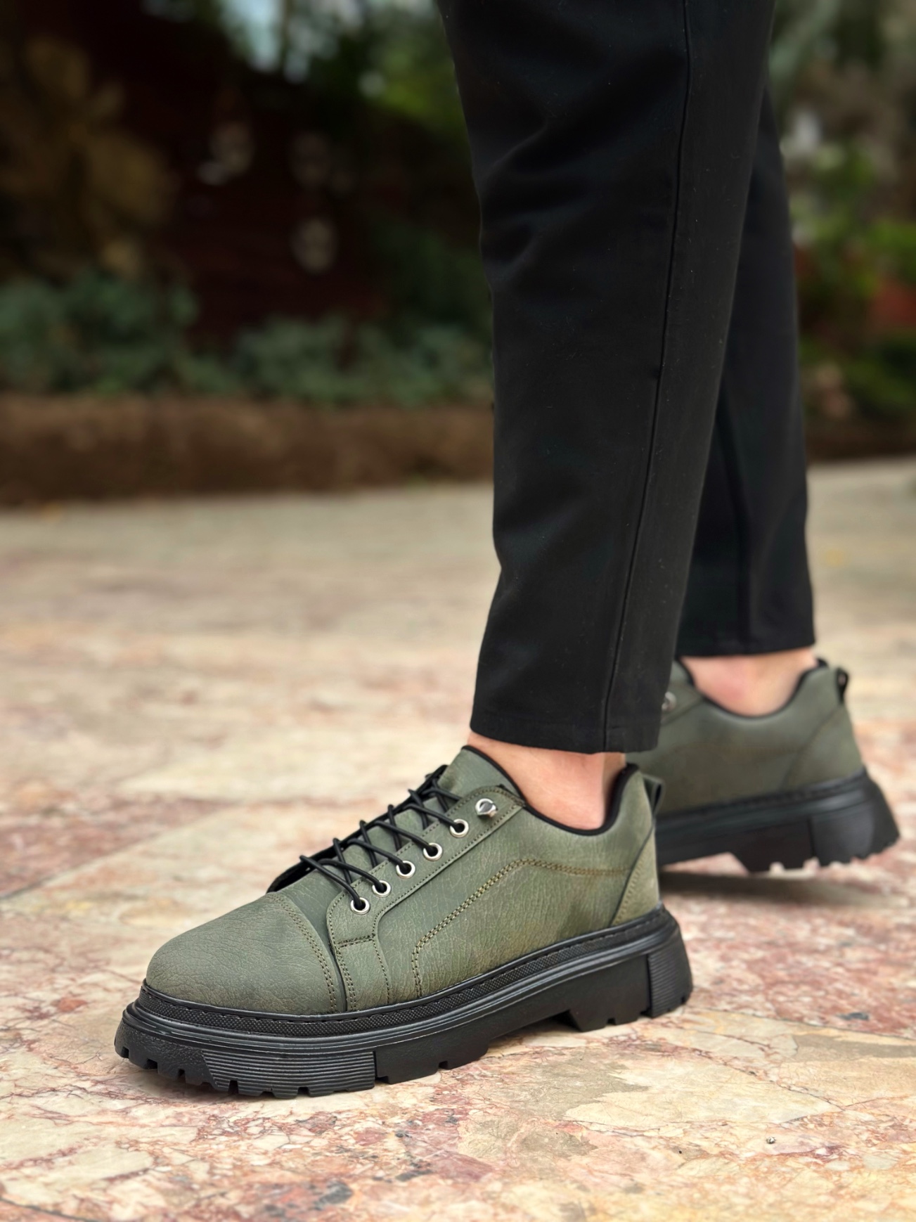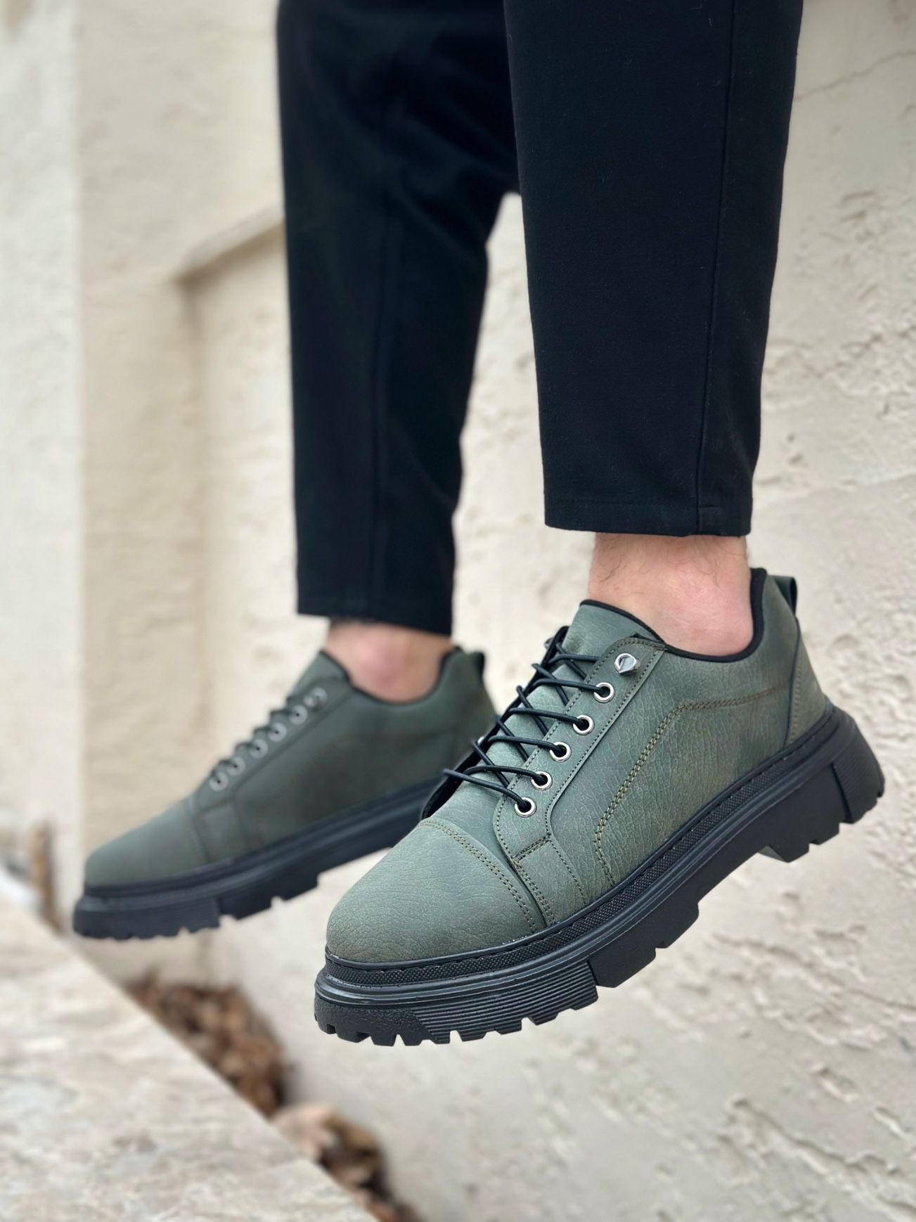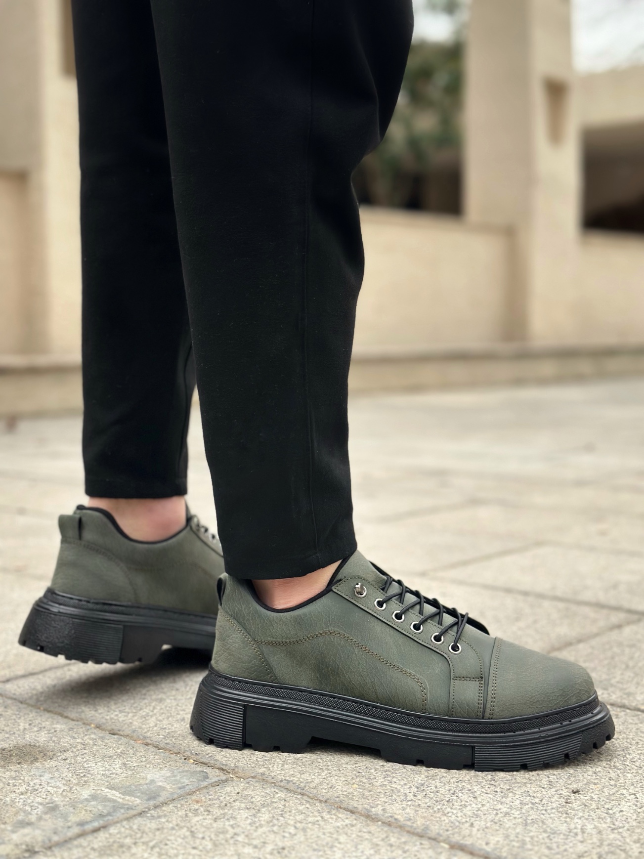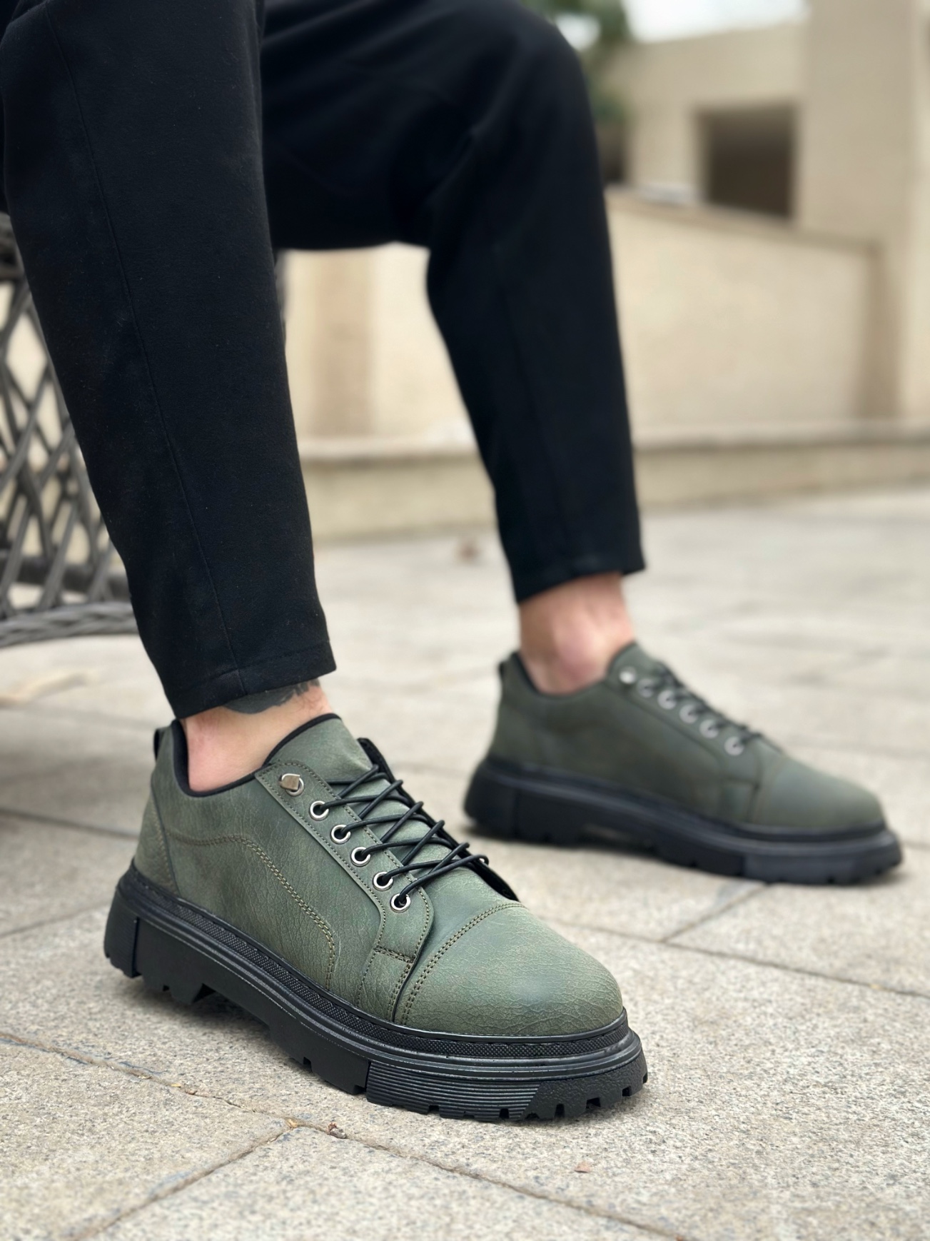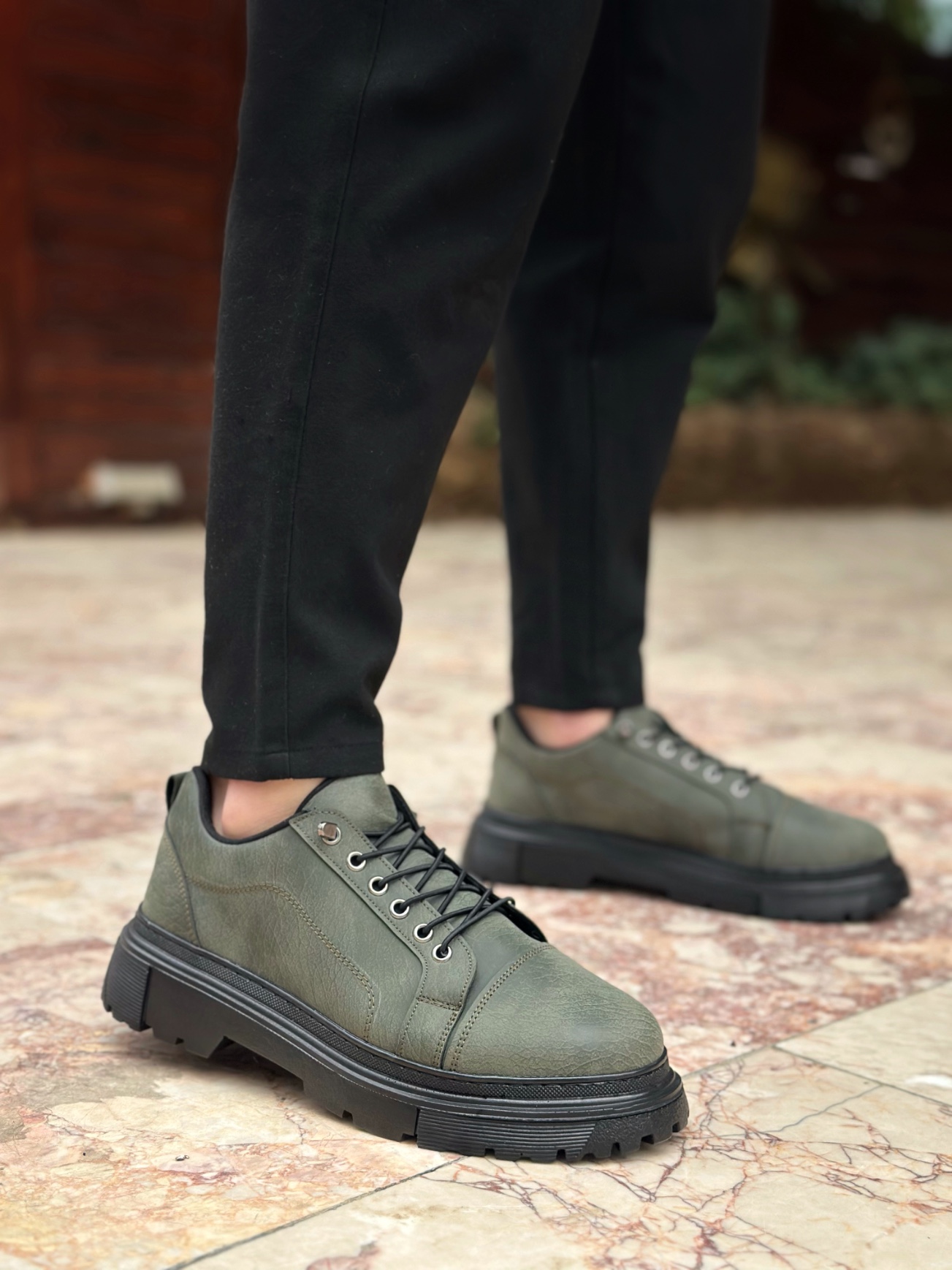 • MirgeShoes Haki Akıllı Lastik Bağcık Erkek Günlük Ayakkabı Yüksek SYH Taban MRG010602563