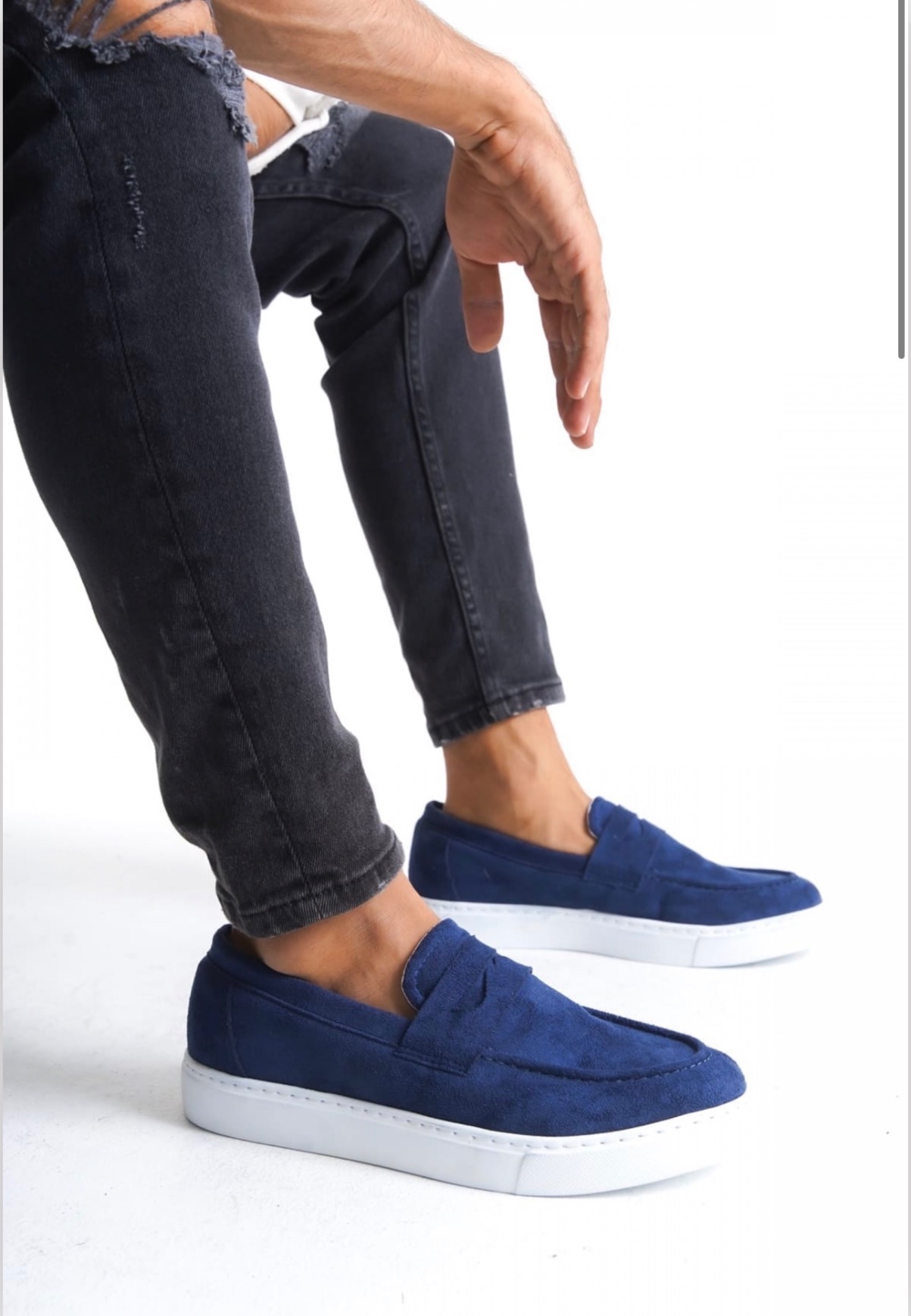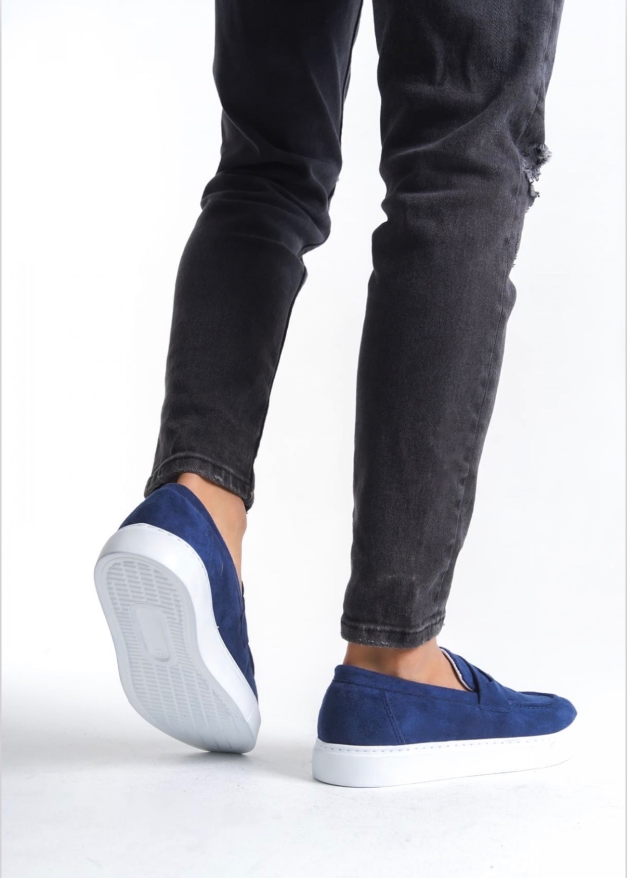 • MirgeShoes Lacivert Bağcıksız Erkek Loafer Ayakkabı Süet Kuşaklı Yüksek BYZ Taban MRG010602898
