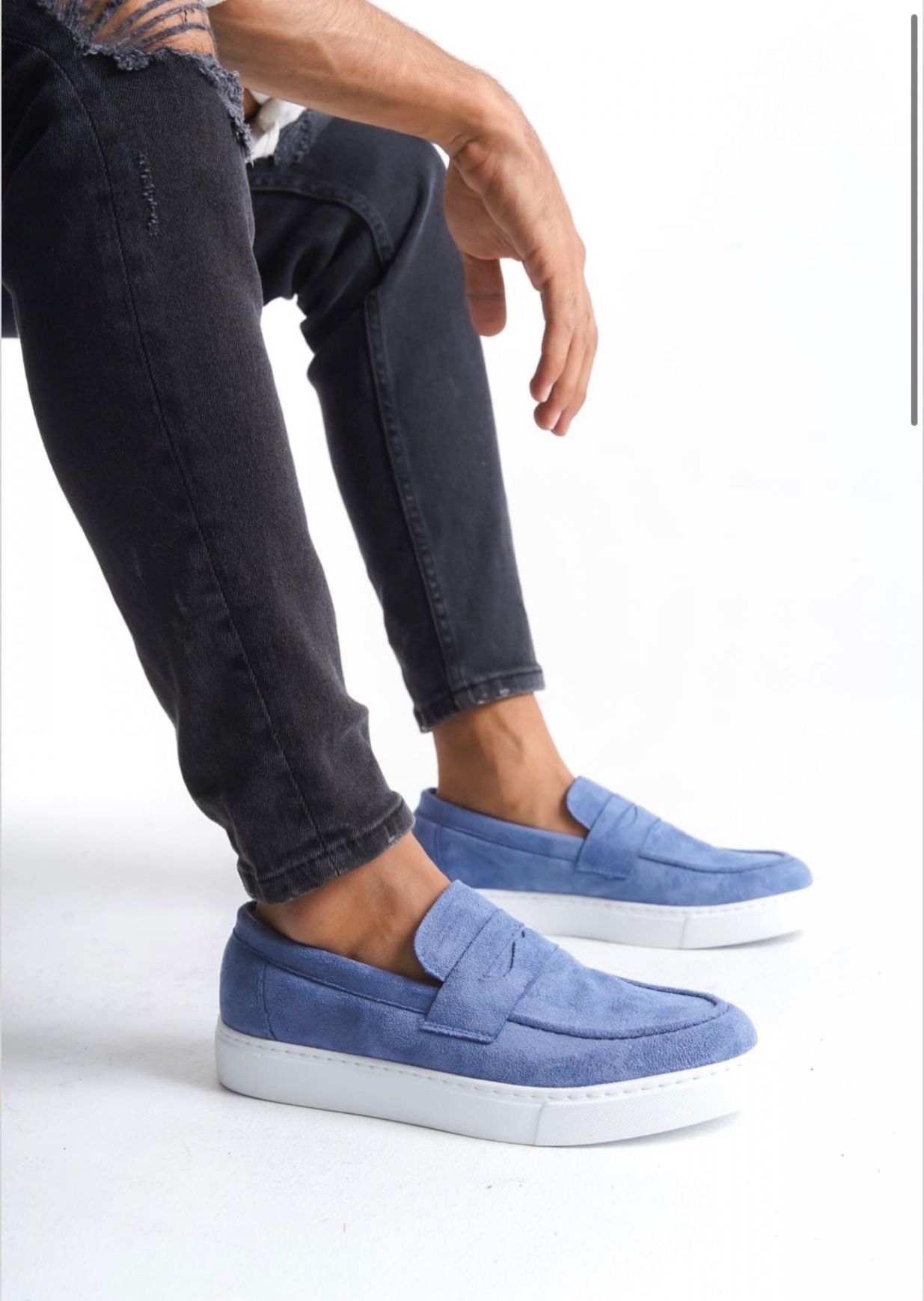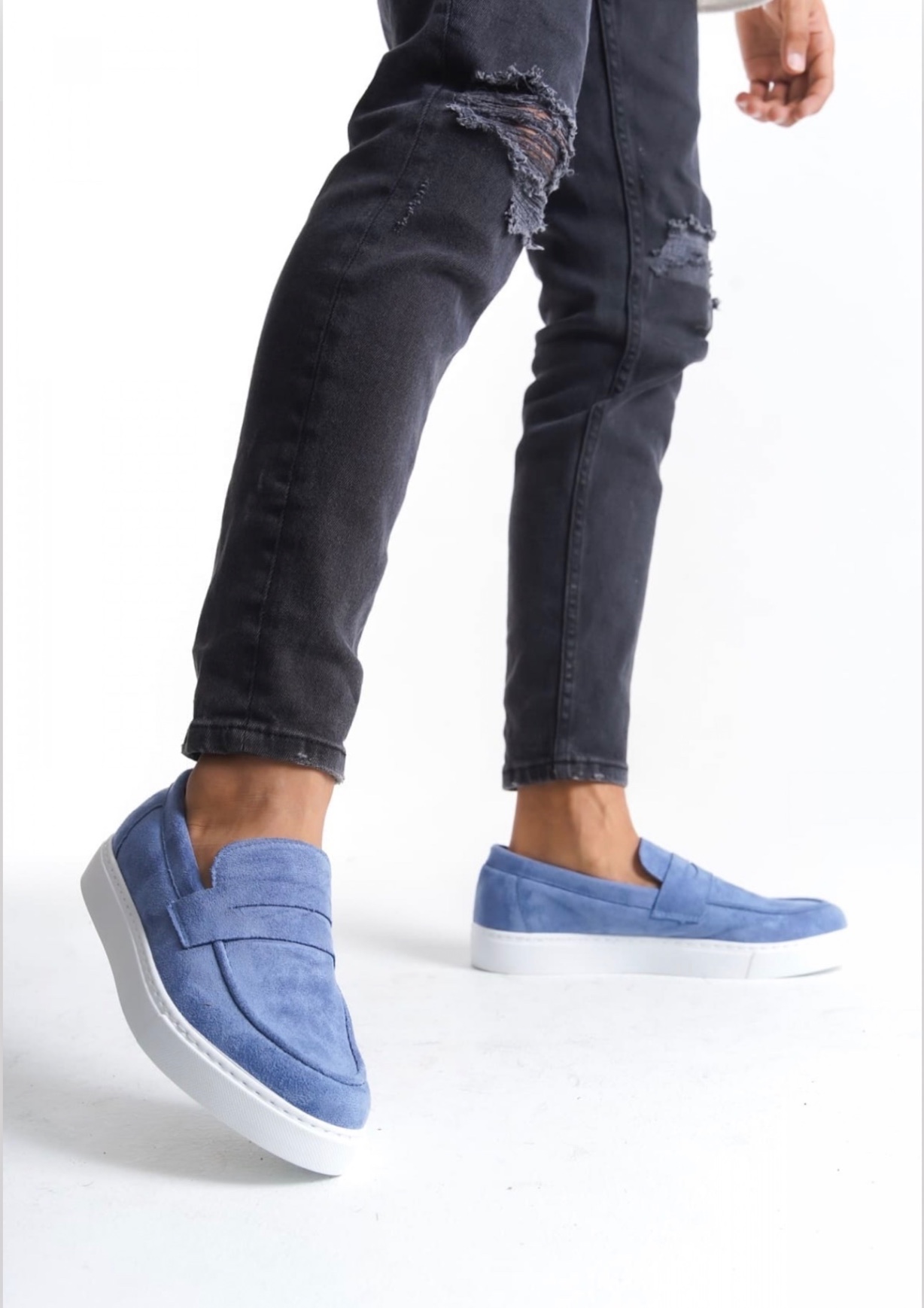 • MirgeShoes Mavi Bağcıksız Erkek Loafer Ayakkabı Süet Kuşaklı Yüksek BYZ Taban MRG010602898