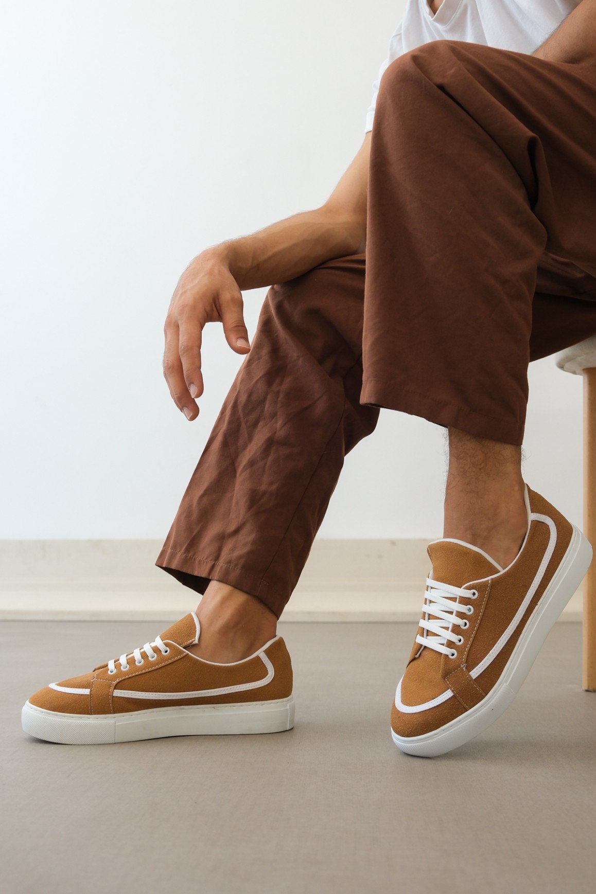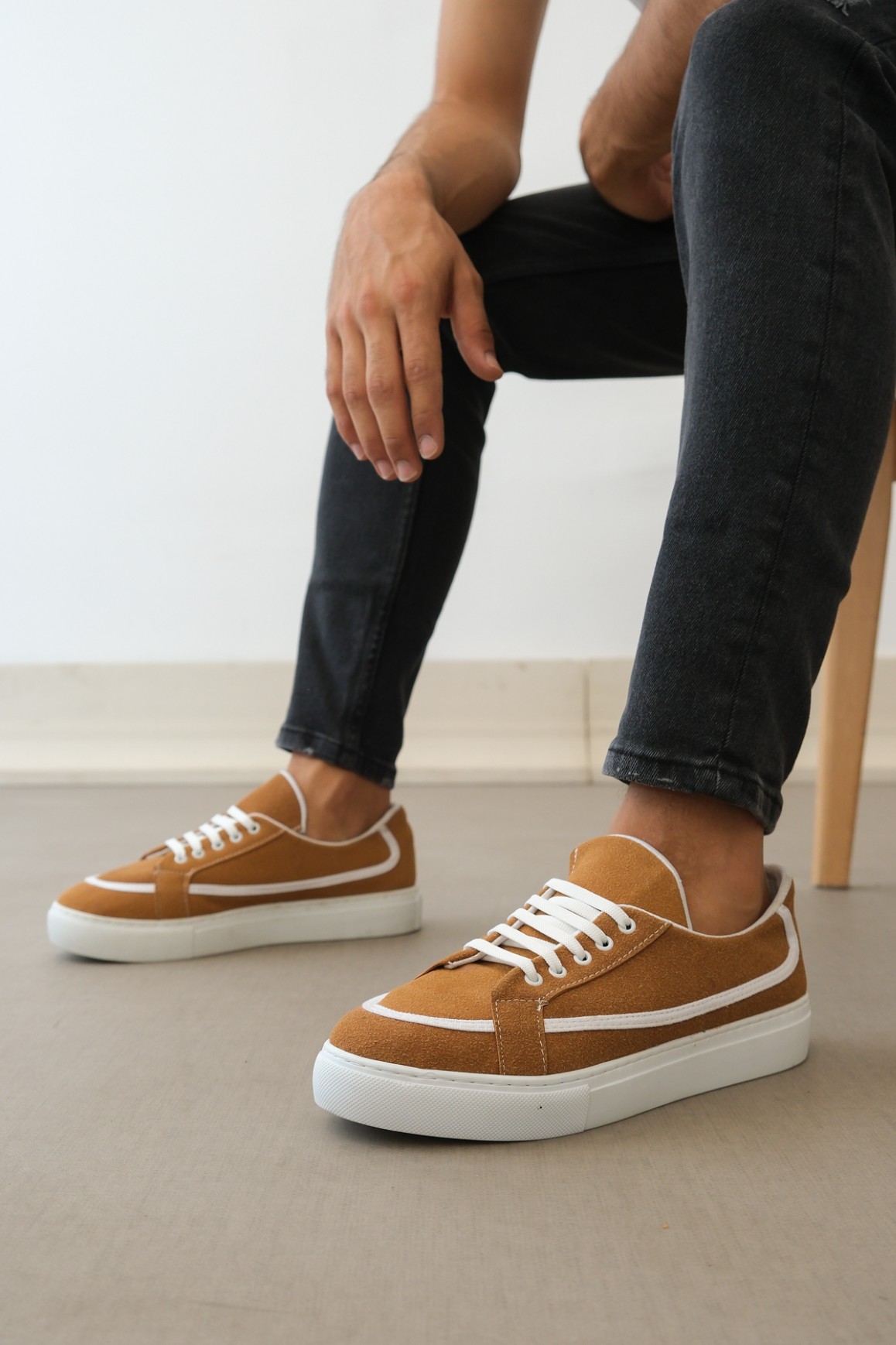 • MirgeShoes Taba Bağcıklı Erkek Spor Ayakkabı Deri Tozu Kalın BYZ Taban MRG010602669