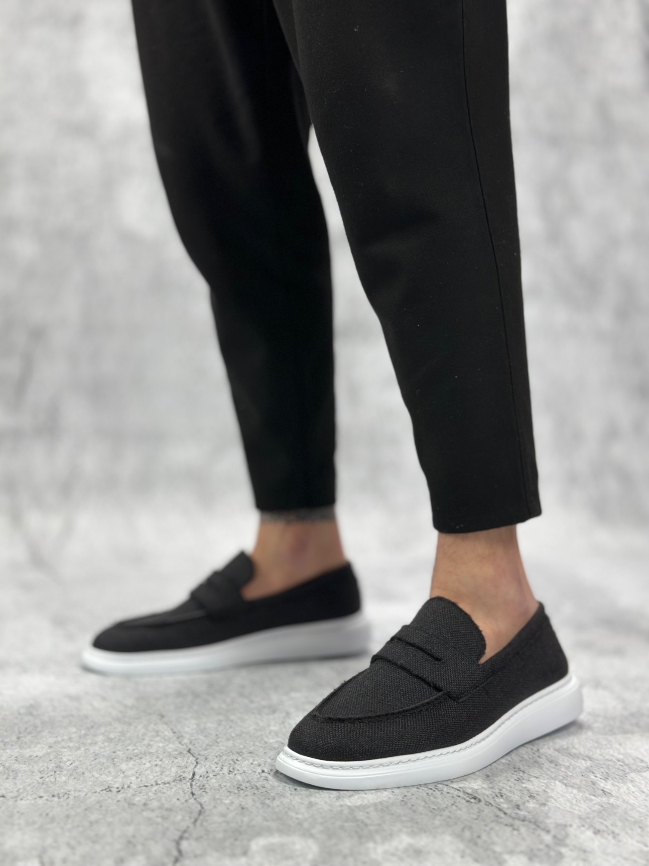 MirgeShoes Siyah Bağcıksız Erkek Klasik Loafer Ayakkabı Keten Tekstil BYZ Taban MRG010602673