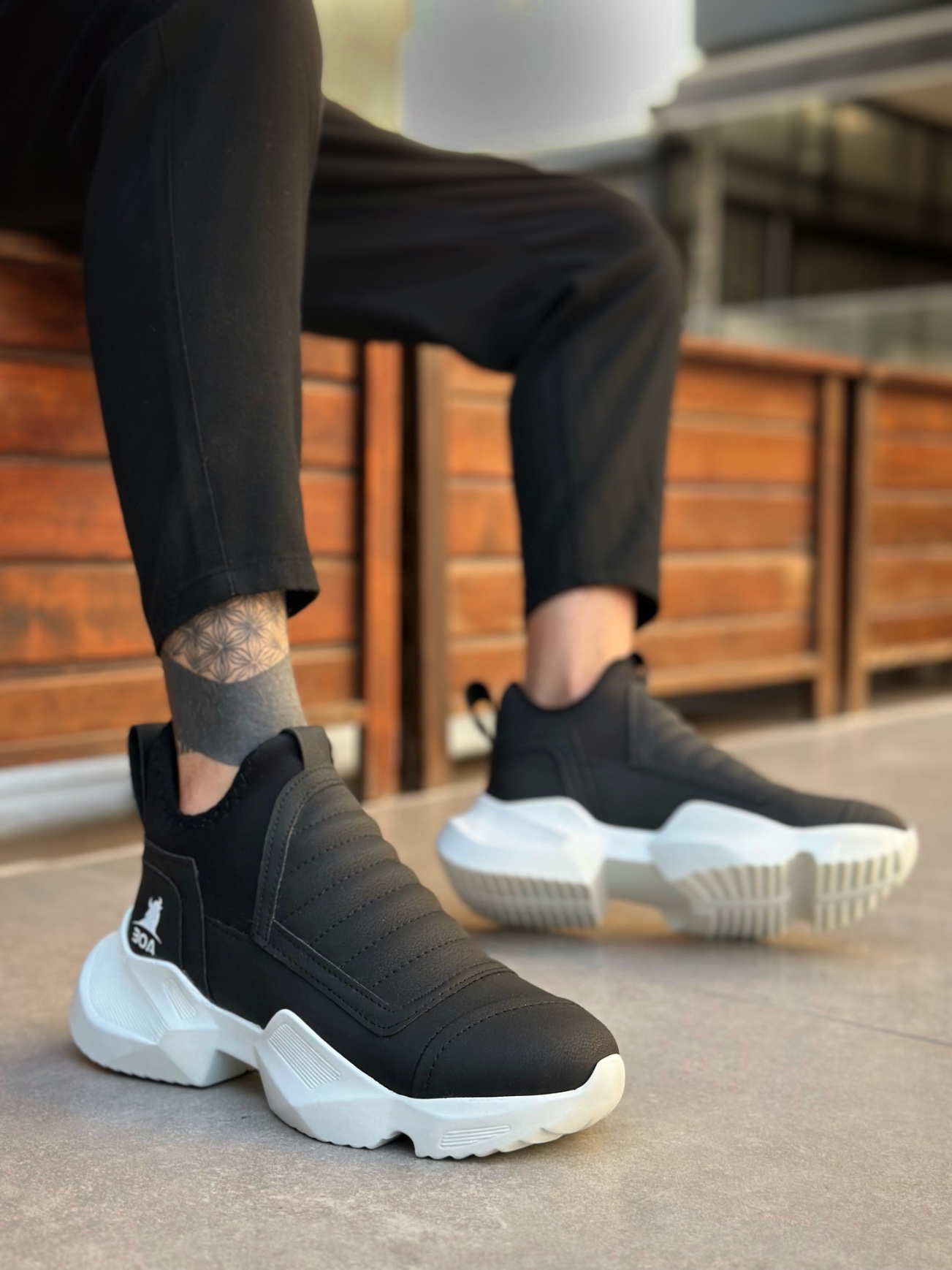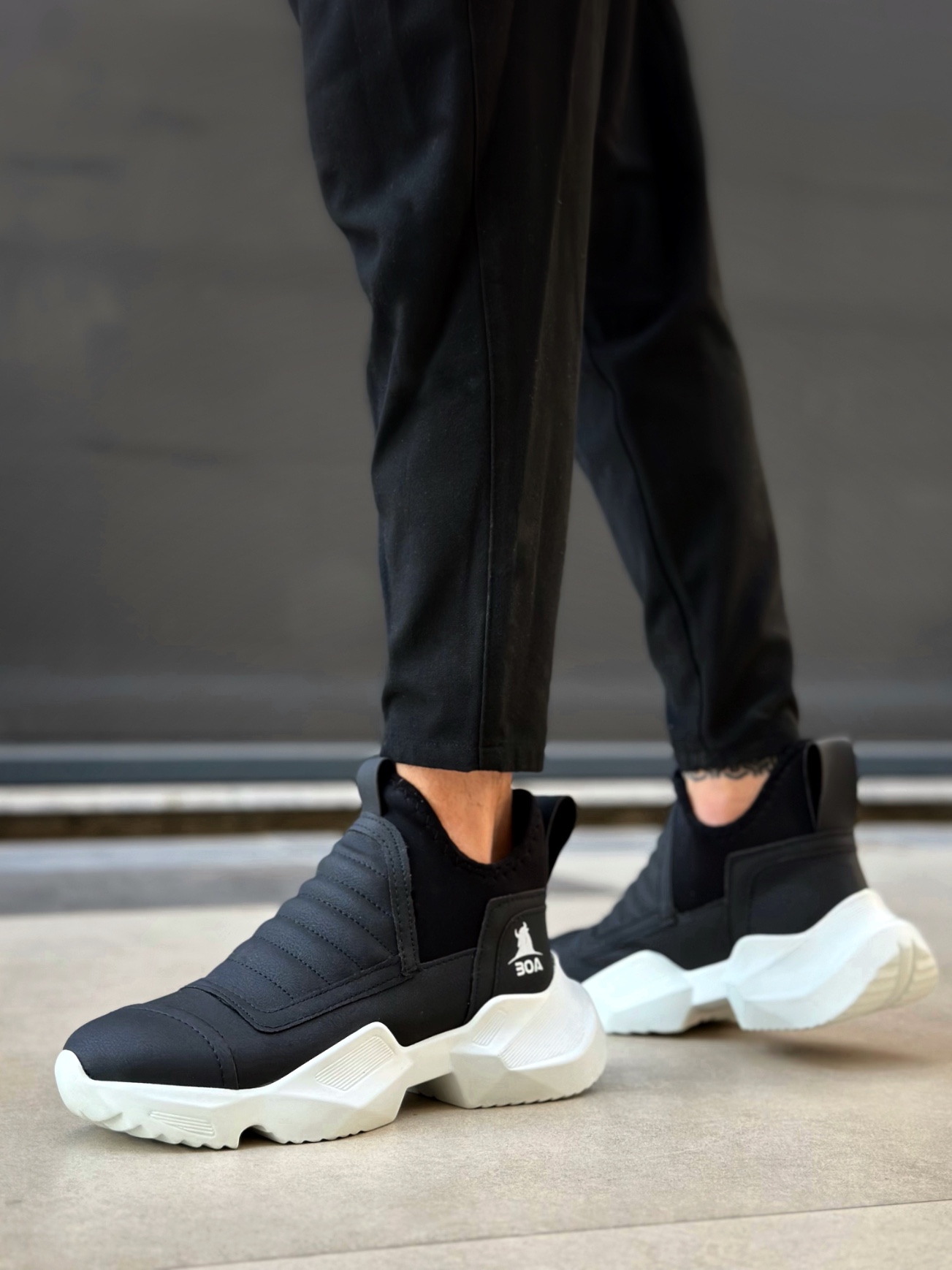 MirgeShoes Siyah Bağcıksız Erkek Spor Yarım Bilek Bot Rahat Yüksek BYZ Taban MRG010602719