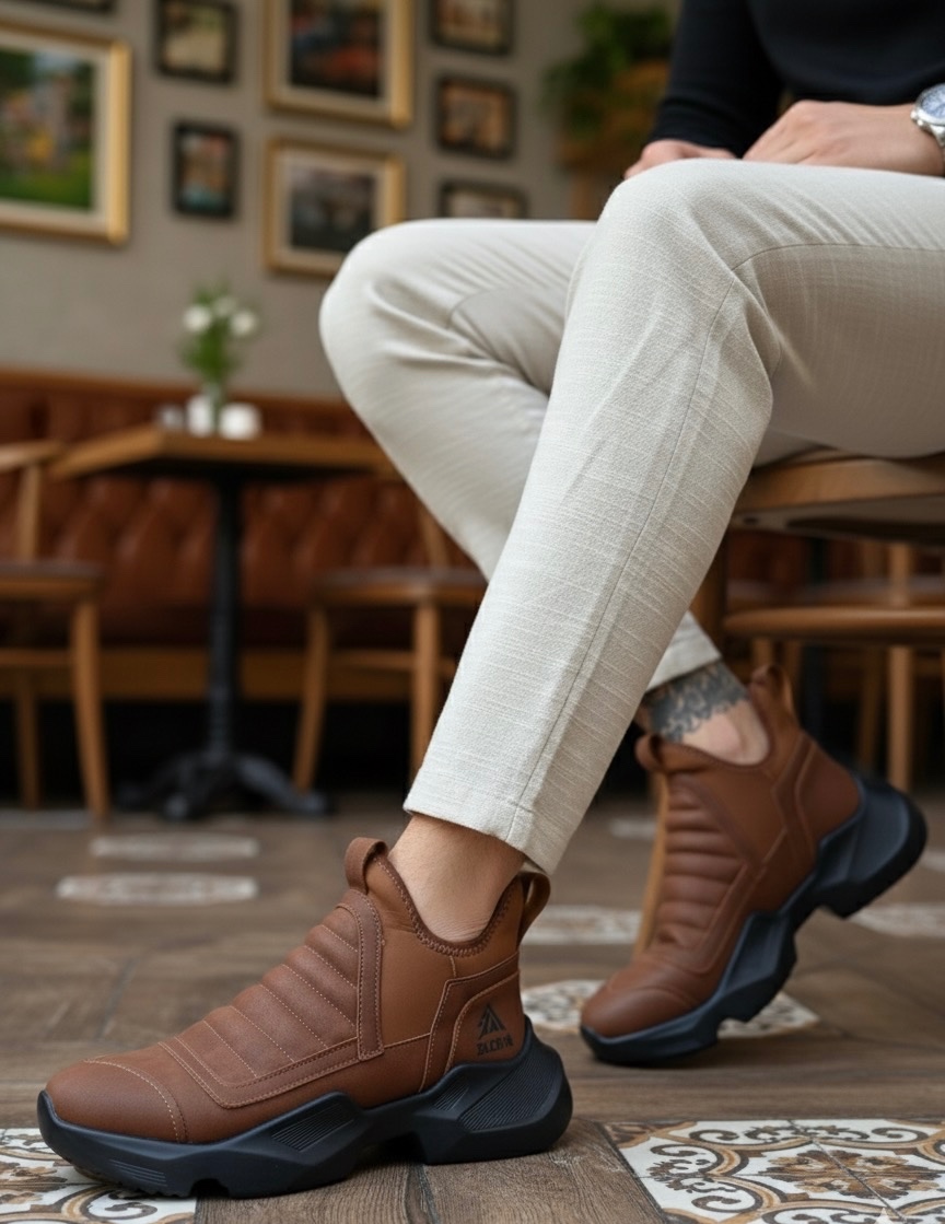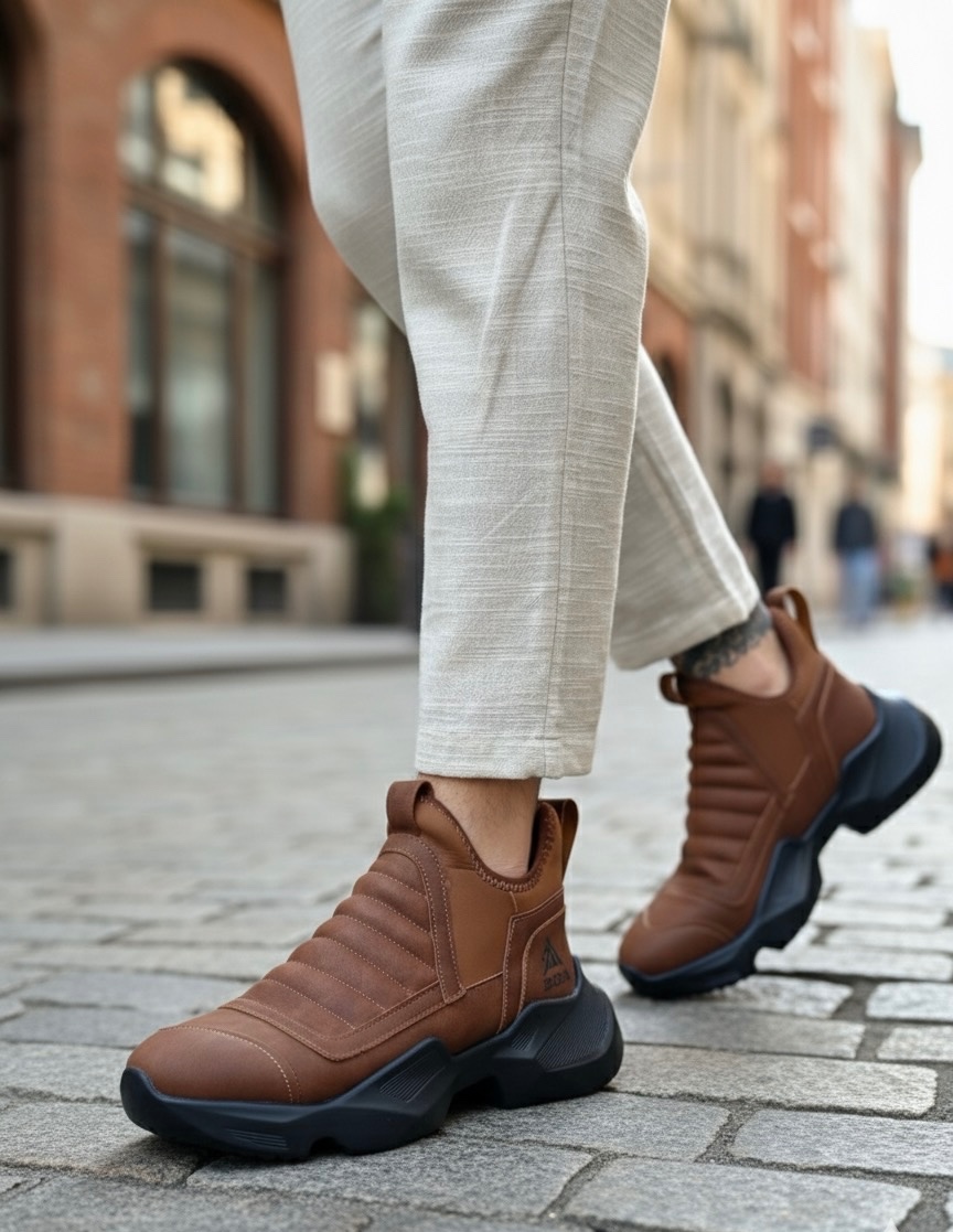 Tarz Erkek Ayakkabı Yüksek Taban MirgeShoes Taba Bağcıksız Erkek Spor Yarım Bilek Bot Rahat Yüksek SYH Taban MRG010602719