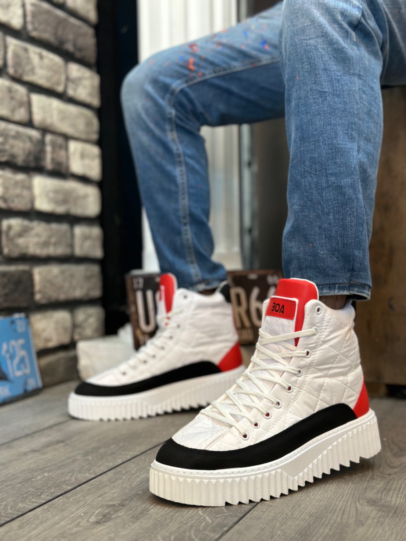 Tarz Erkek Ayakkabı Yüksek Taban MirgeShoes Beyaz Bağcıklı Erkek Spor Bot Paraşüt Kumaş Yüksek Tırtıklı BYZ-SYH-KRMZ Taban MRG010603129