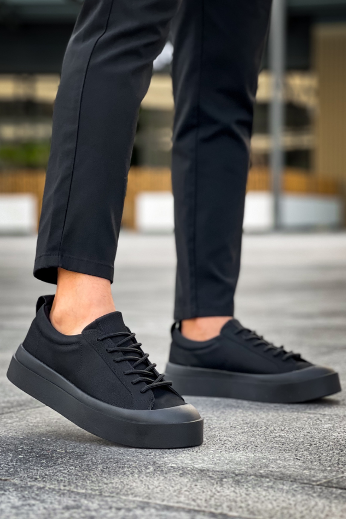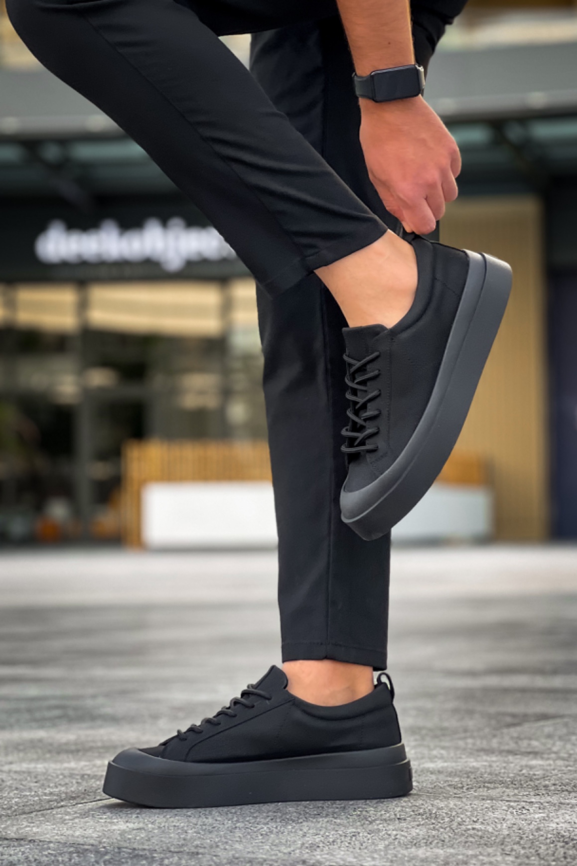 Tarz Erkek Ayakkabı Yüksek Taban MirgeShoes Siyah Bağcıklı Erkek Casual Ayakkabı Deri Özel Termo Siyah Taban MRG01062818