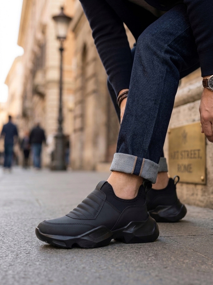 • MRG0402 Bağcıksız Rahat Yüksek Taban Erkek Spor Yarım Bilek Bot