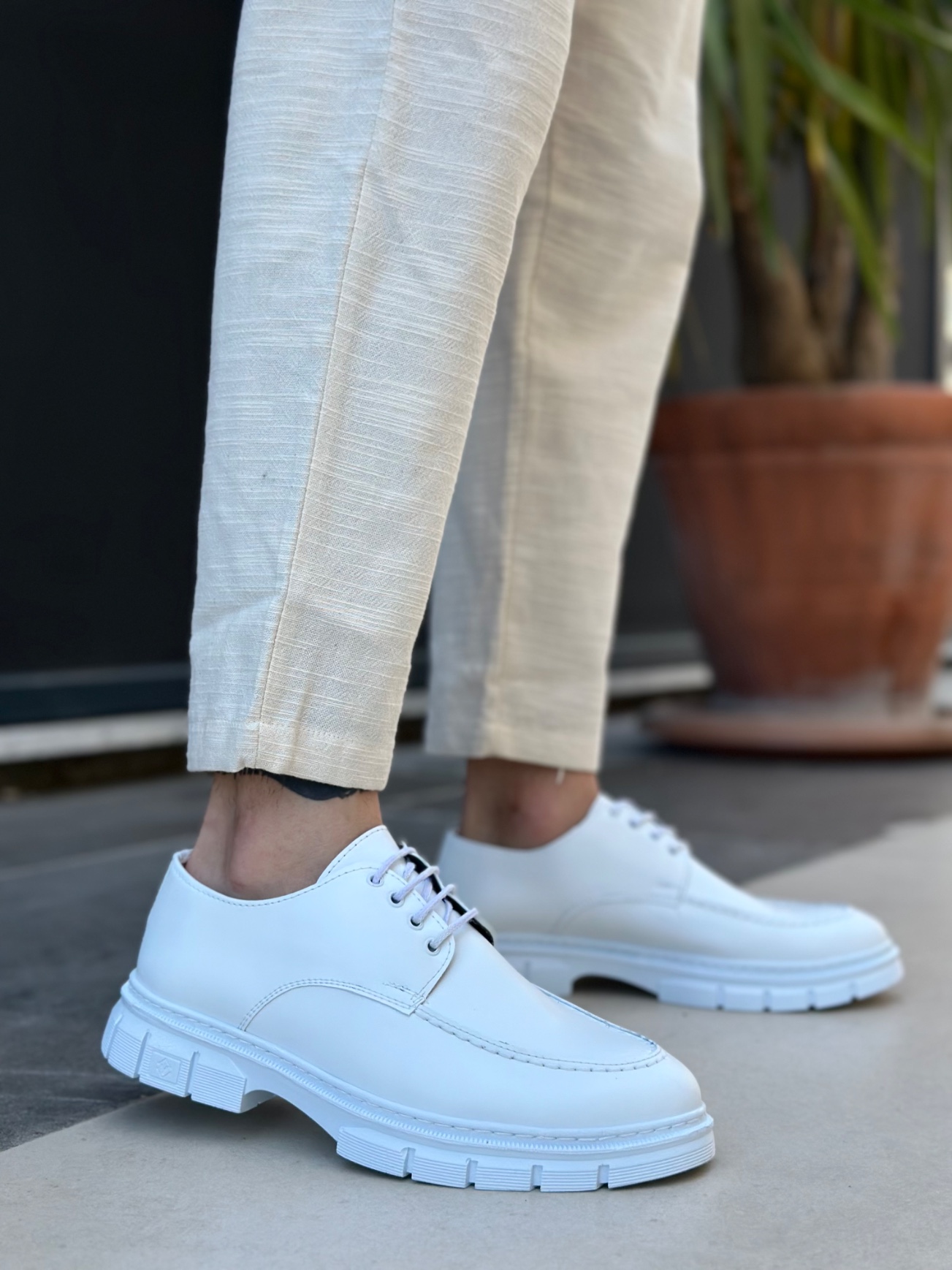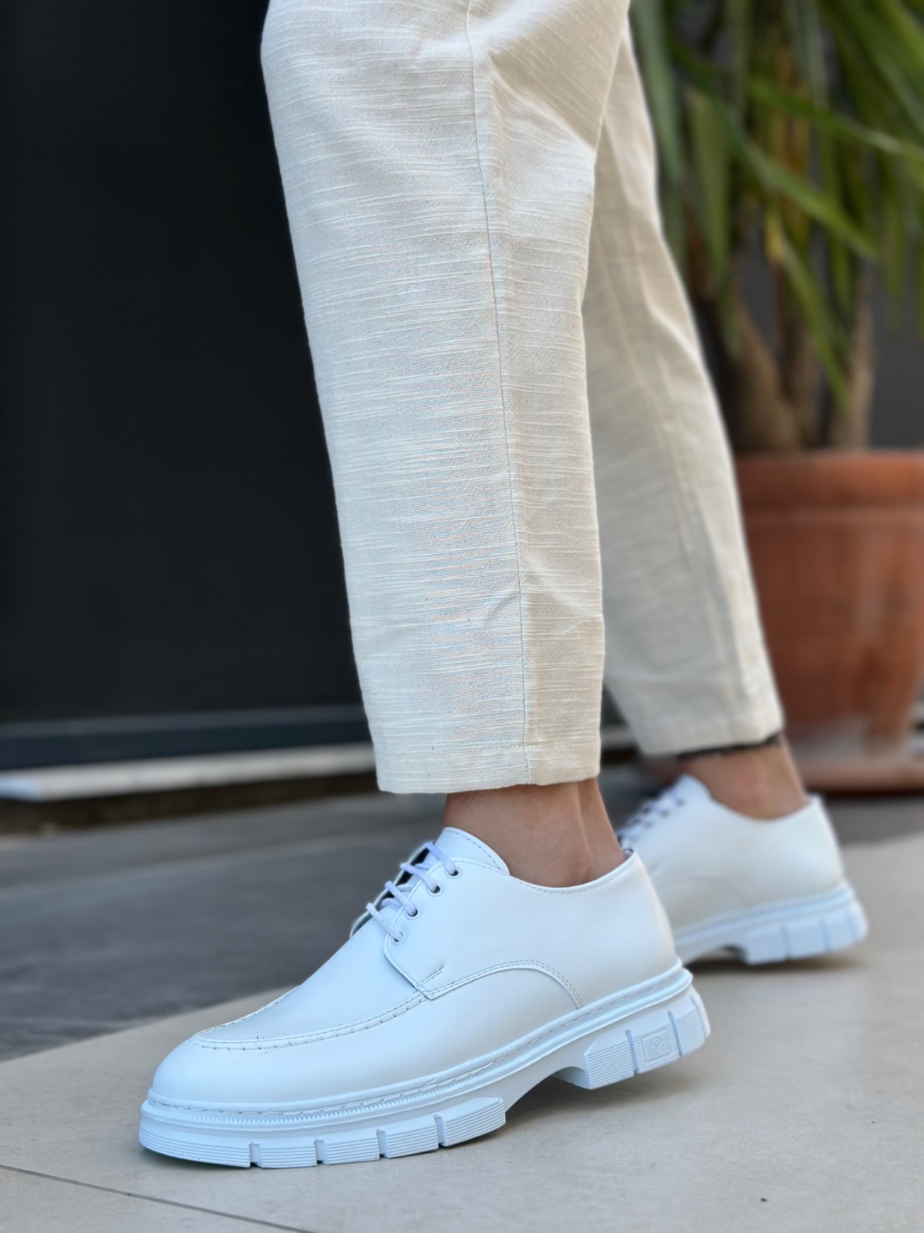 • MirgeShoes Beyaz Bağcıklı Erkek Klasik Rugan Casual Ayakkabı Yüksek BYZ Taban MRG010602555