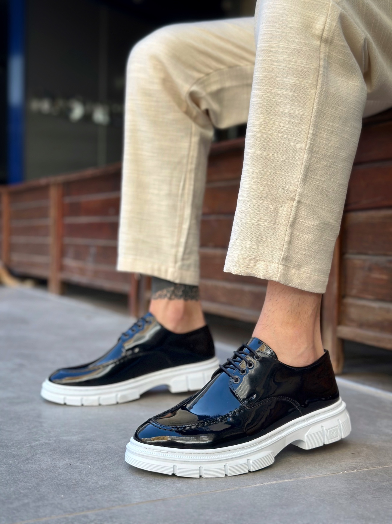 Tarz Erkek Ayakkabı Klasik Ayakkabı MirgeShoes Siyah Bağcıklı Erkek Klasik Rugan Casual Ayakkabı Yüksek BYZ Taban MRG010602555