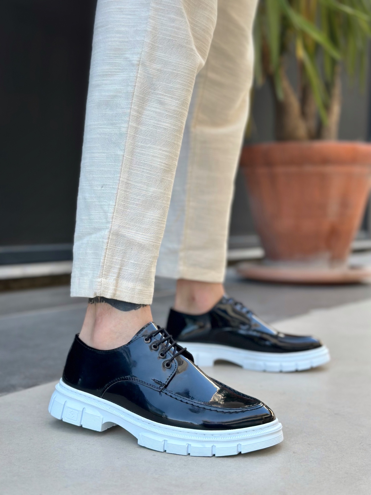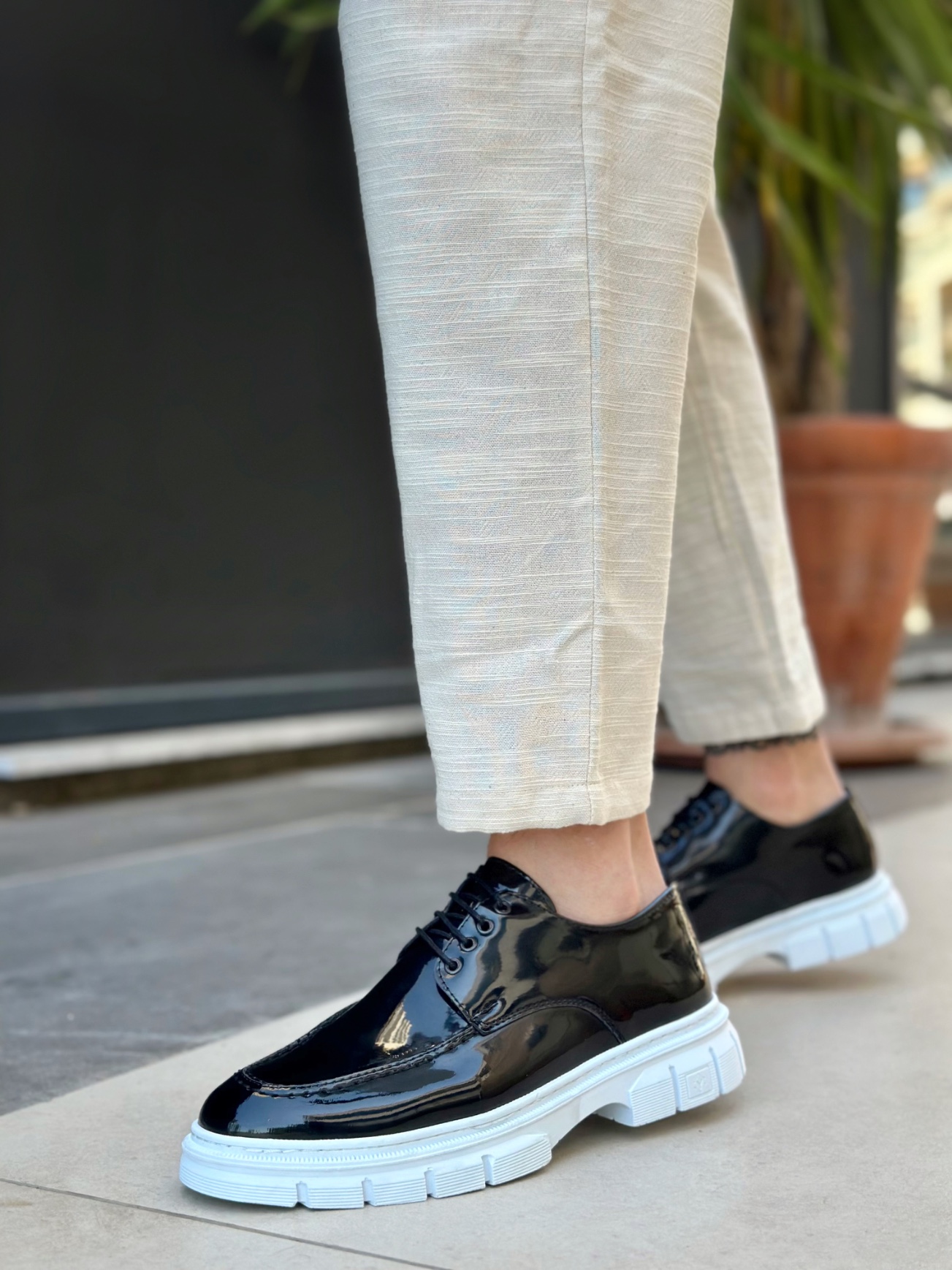 MirgeShoes Siyah Bağcıklı Erkek Klasik Rugan Casual Ayakkabı Yüksek BYZ Taban MRG010602555