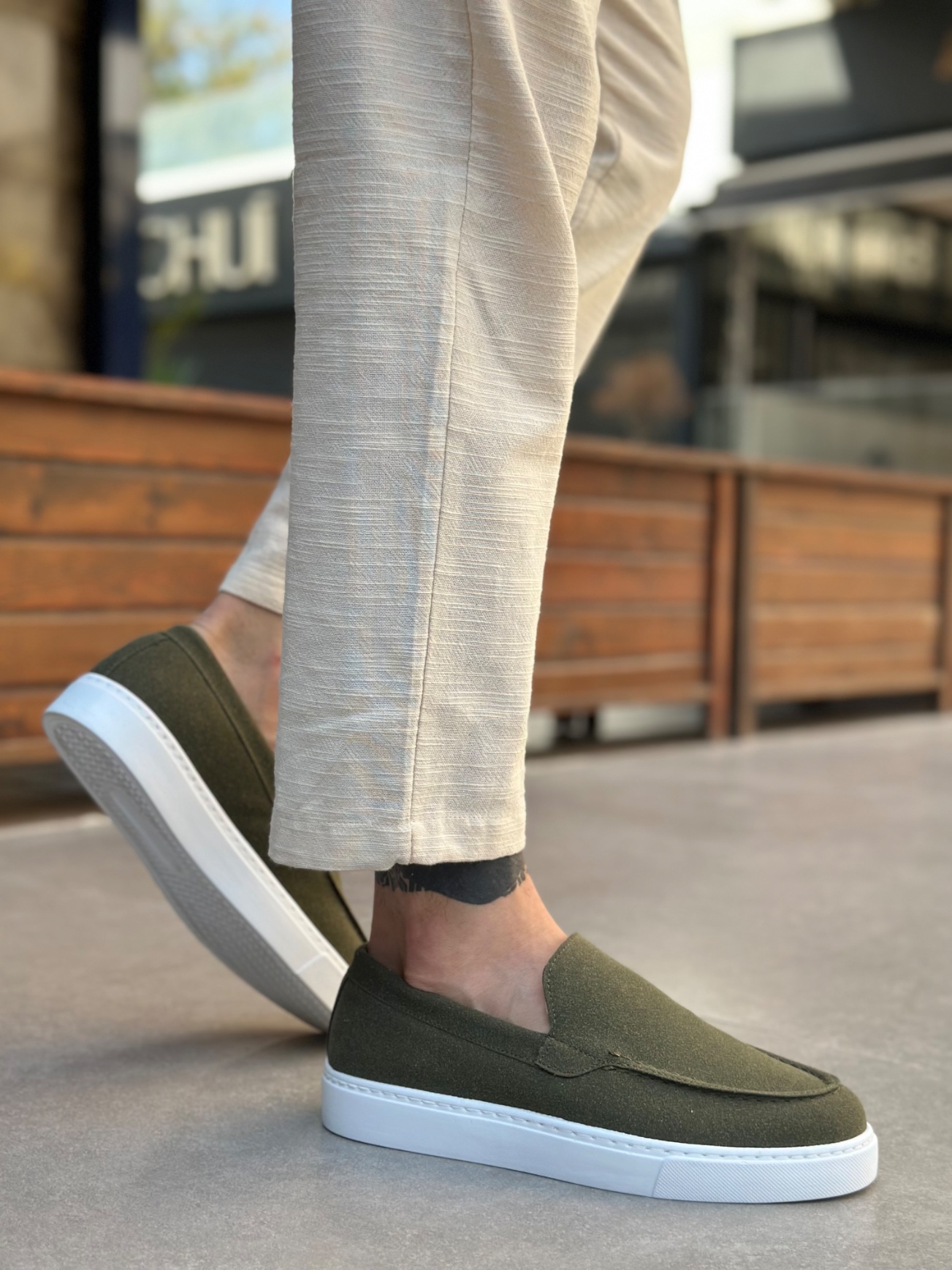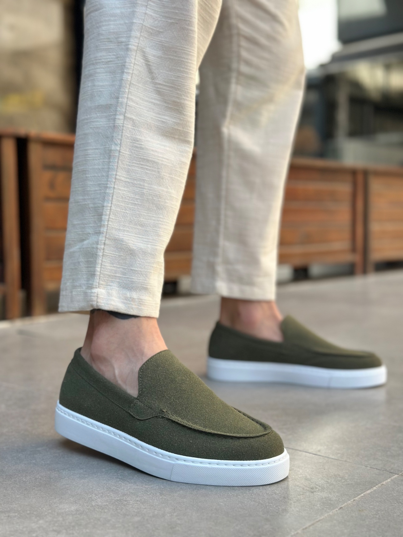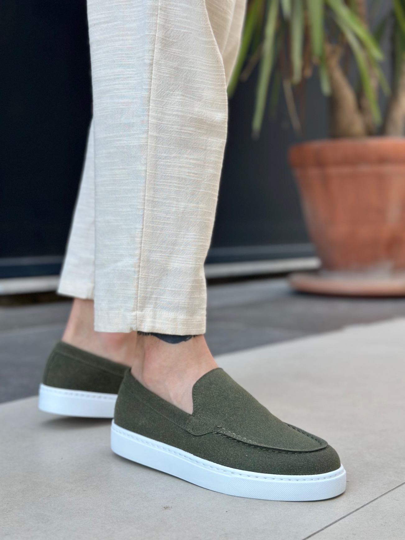 MirgeShoes Haki Bağcıksız Erkek Loafer Ayakkabı Kalın BYZ Taban MRG010602559