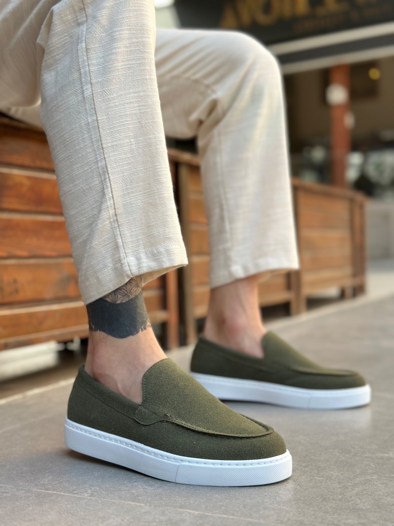 Tarz Erkek Ayakkabı Klasik Ayakkabı MirgeShoes Haki Bağcıksız Erkek Loafer Ayakkabı Kalın BYZ Taban MRG010602559