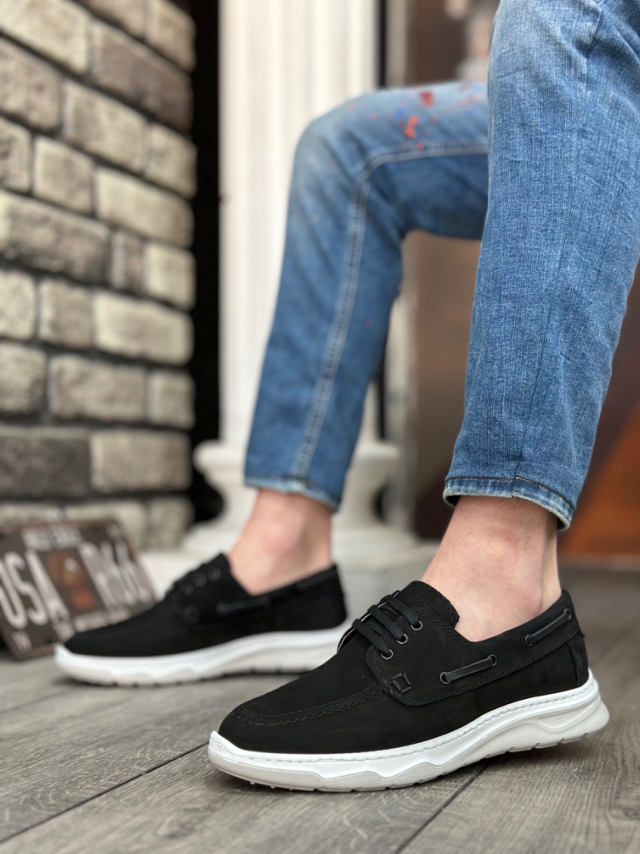 • MirgeShoes Siyah Bağcıklı Erkek Günlük Classic Ayakkabı İçi Dışı Hakiki Nubuk Deri BYZ Taban MRG010602655