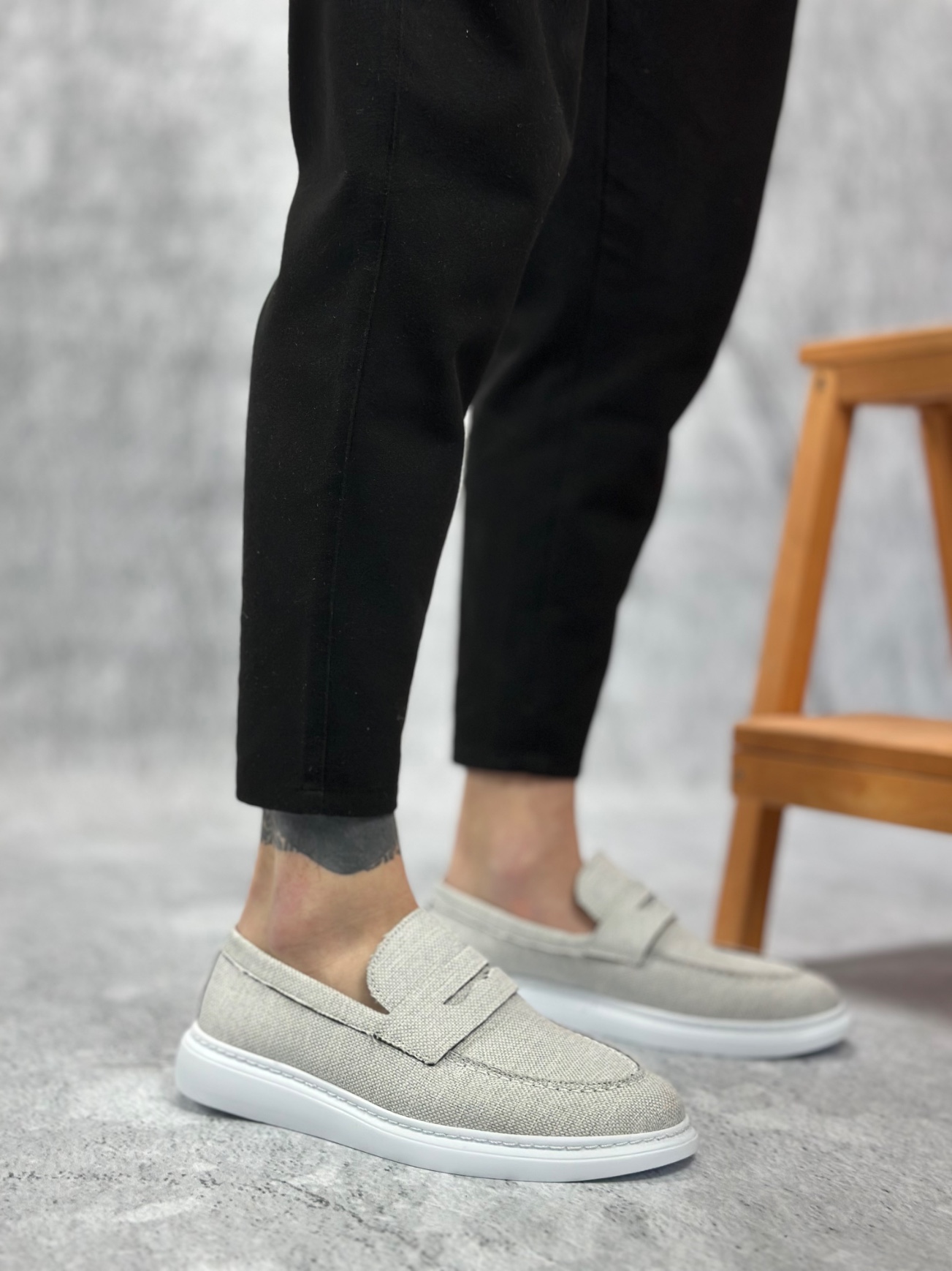 MirgeShoes Gri Bağcıksız Erkek Klasik Loafer Ayakkabı Keten Tekstil BYZ Taban MRG010602673