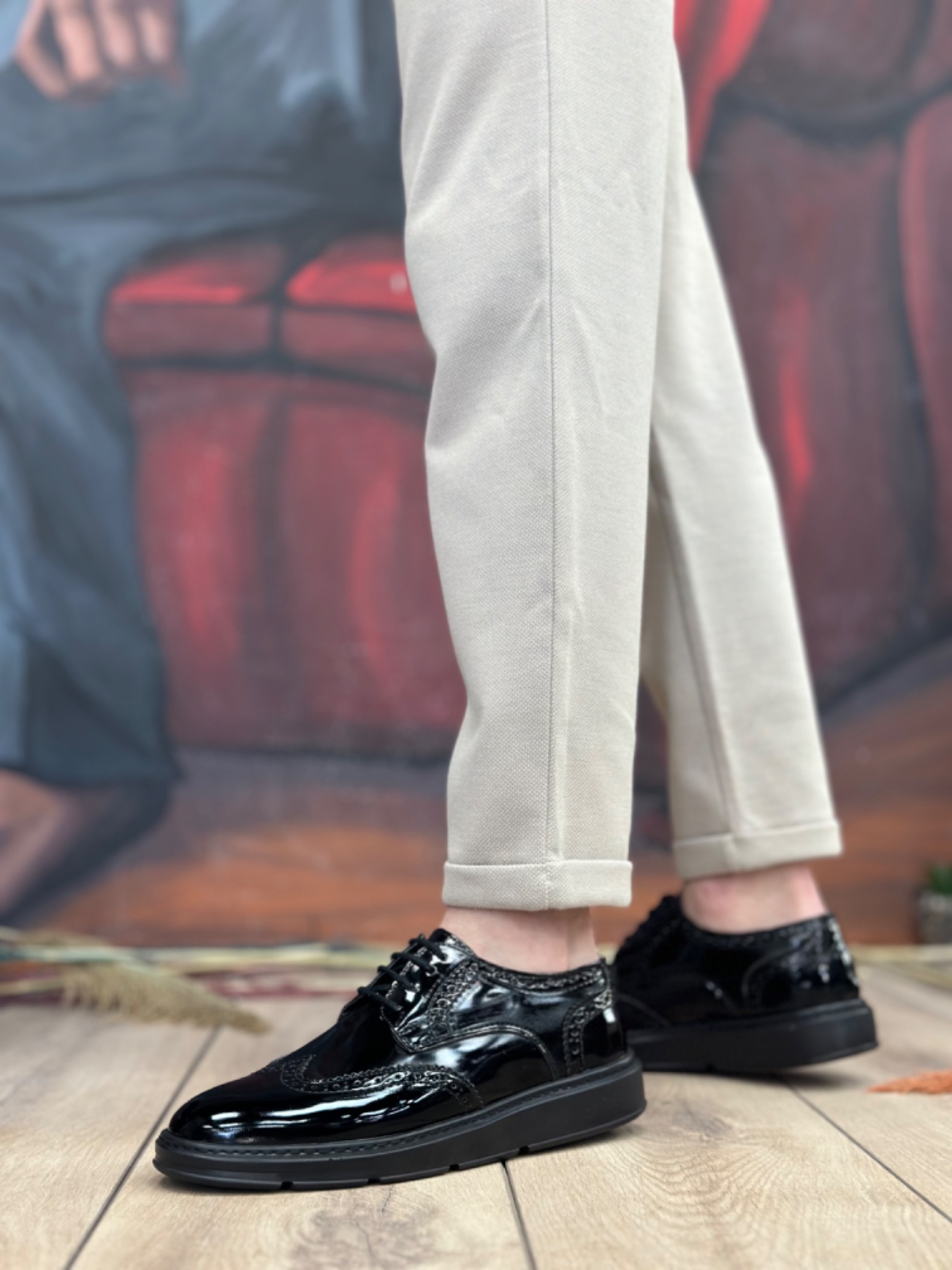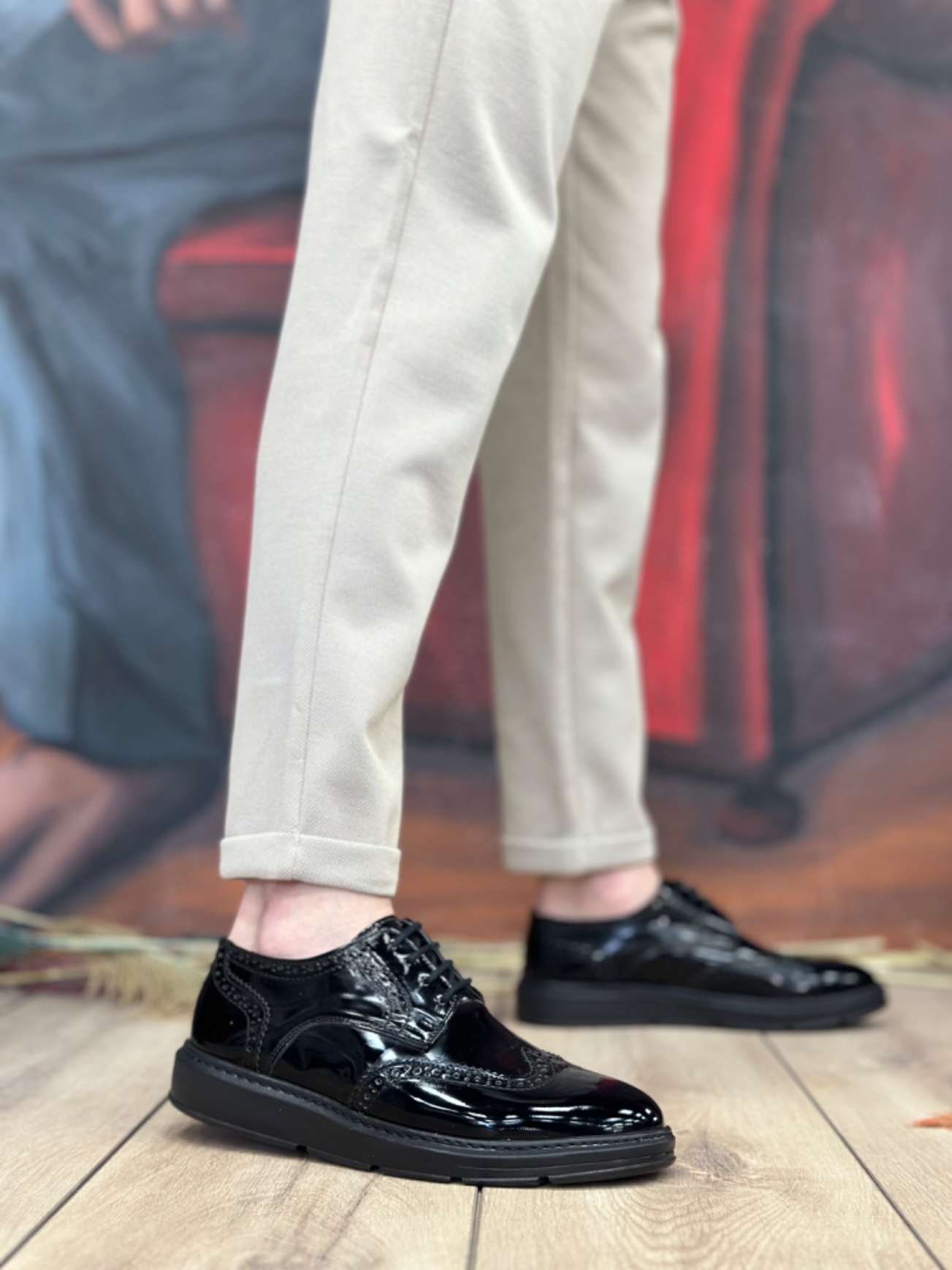 • MRG0003 Bağcıklı Klasik  Siyah Taban Rugan Yüksek Taban Casual Erkek Ayakkabı