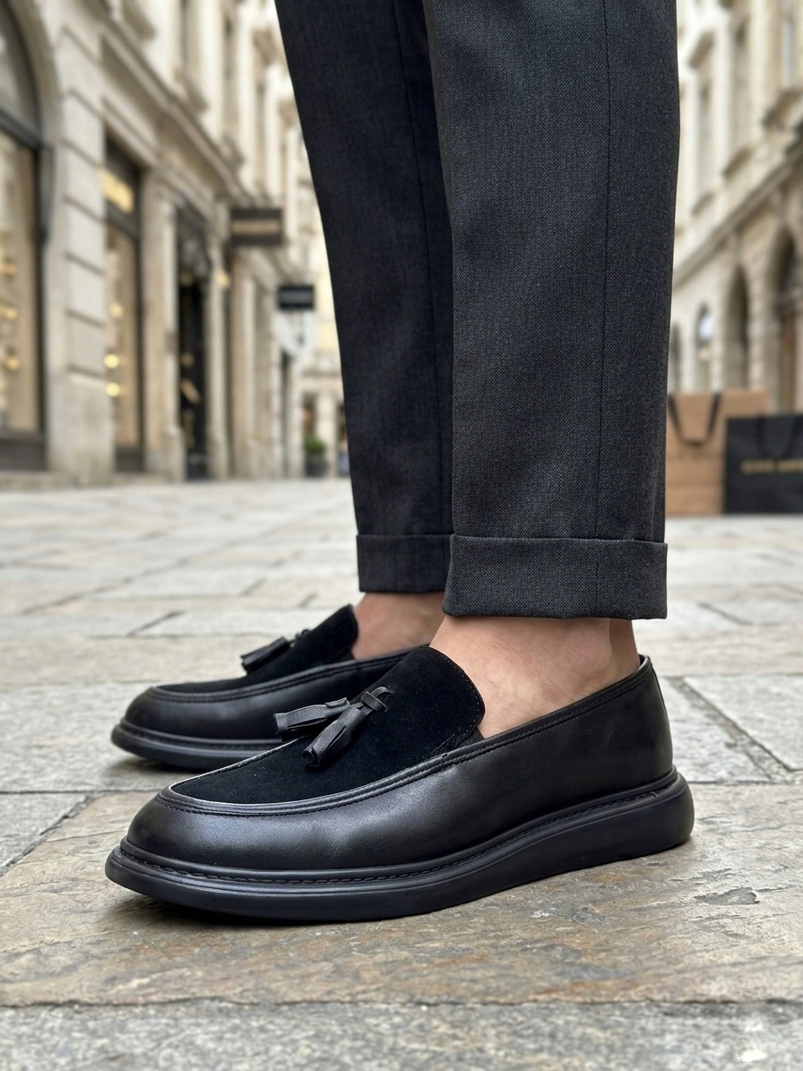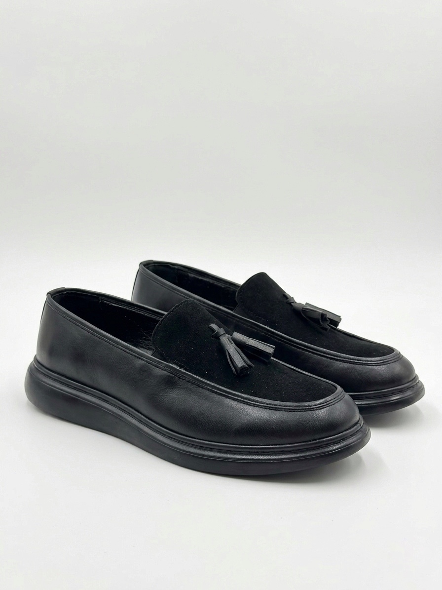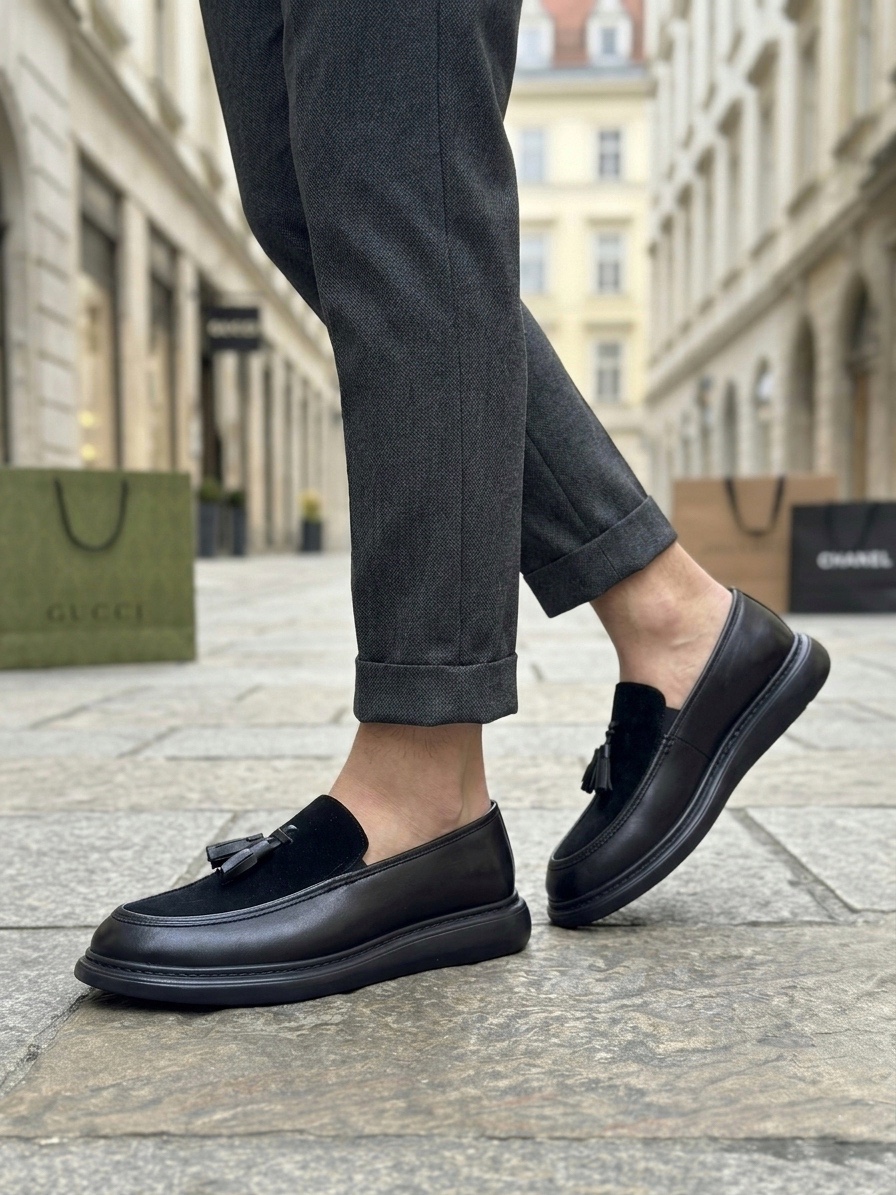 • MRG0005 Yeni Sezon Kalın Tabanlı Siyah Süet Makosen Ayakkabı