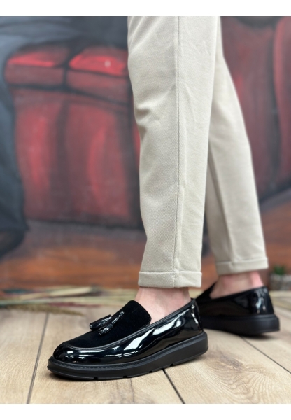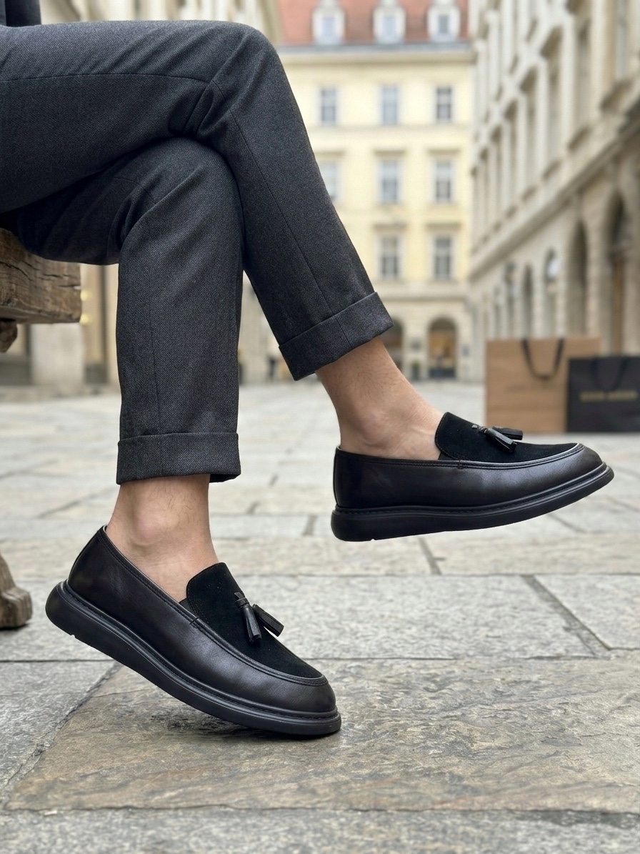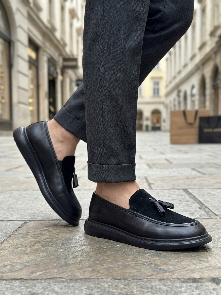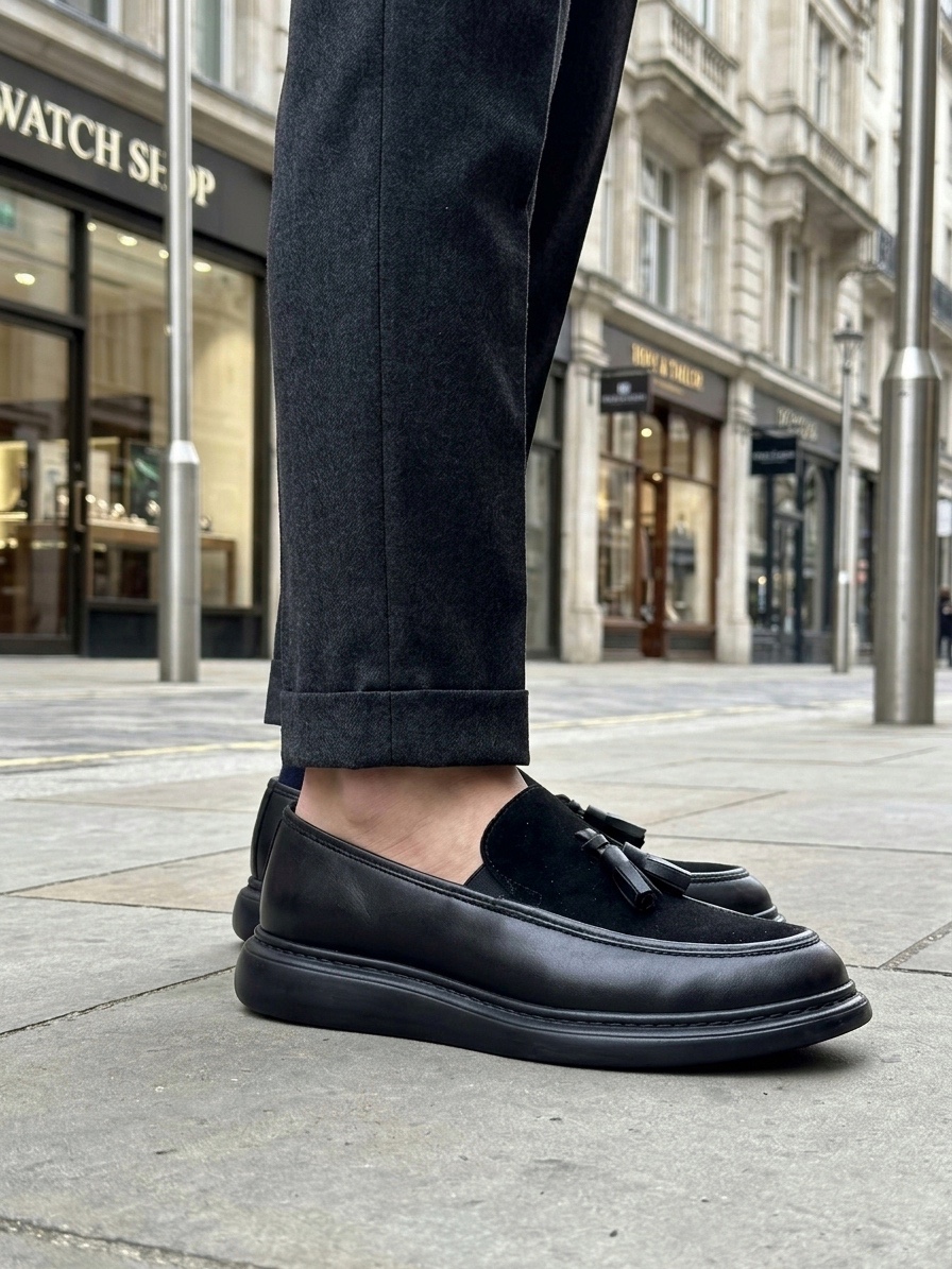 • MRG0005 Yeni Sezon Kalın Tabanlı Siyah Süet Makosen Ayakkabı