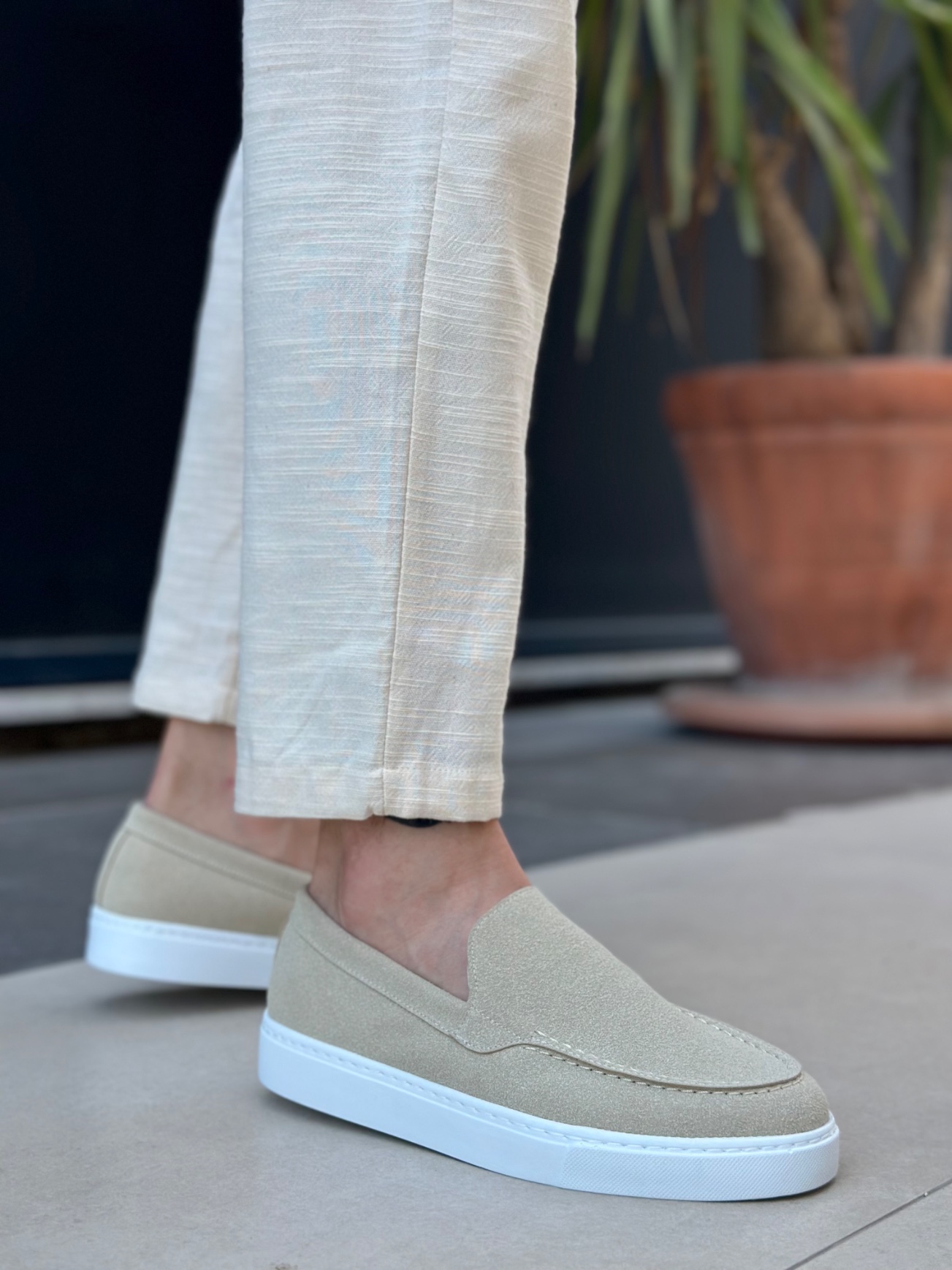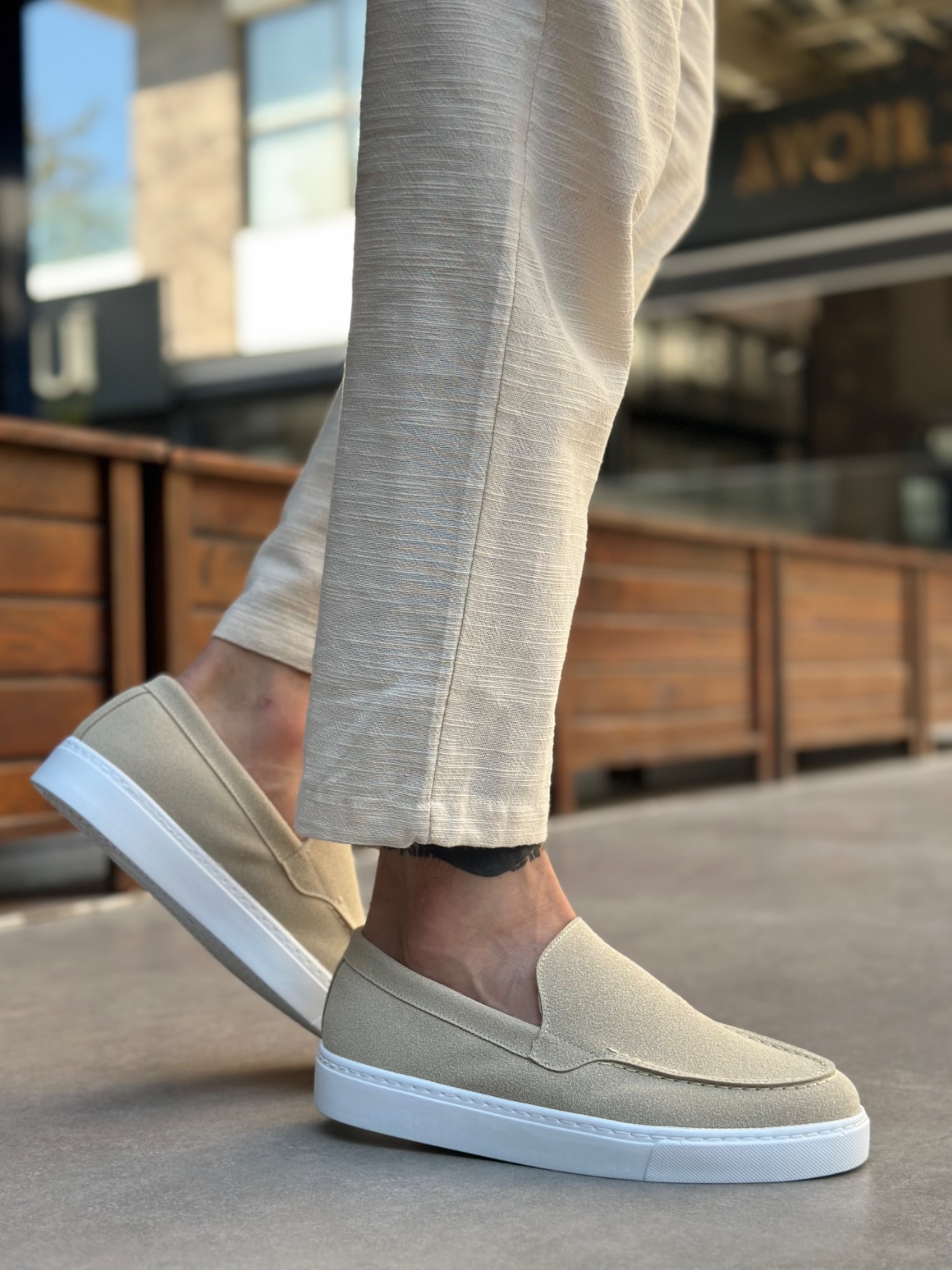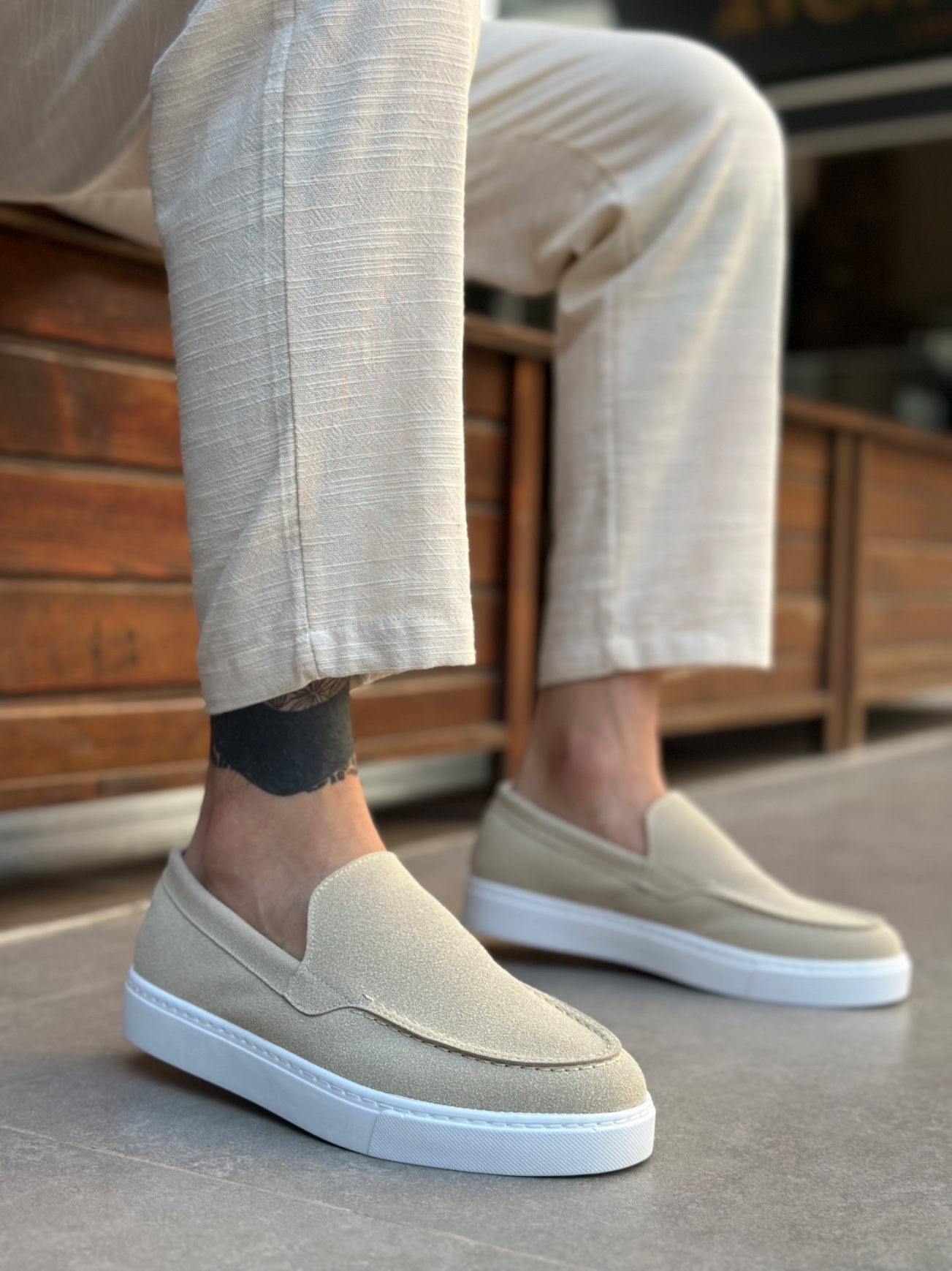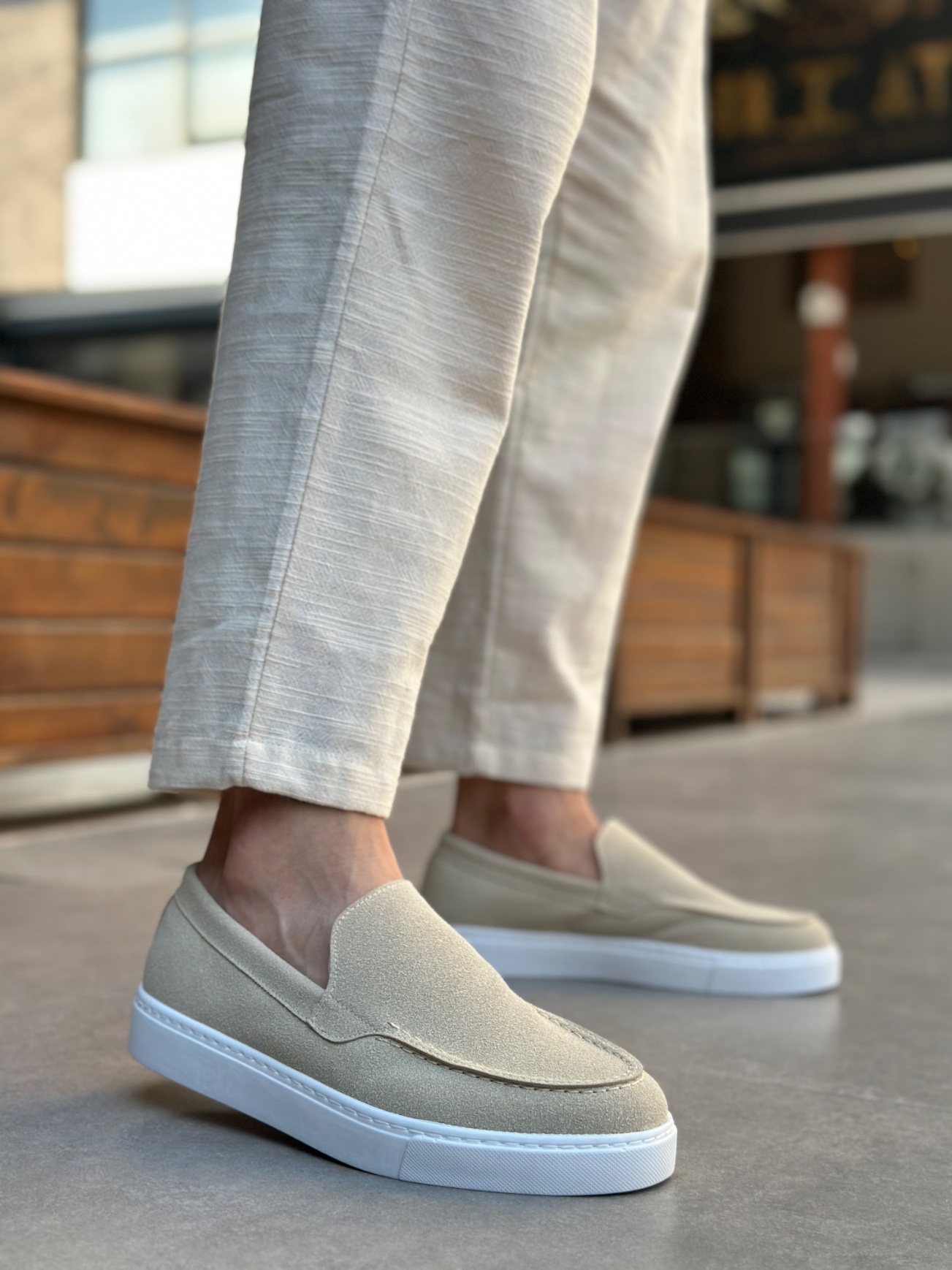 MRG0241 Bağcıksız Yüksek Taban Bej Süet Erkek Ayakkabı