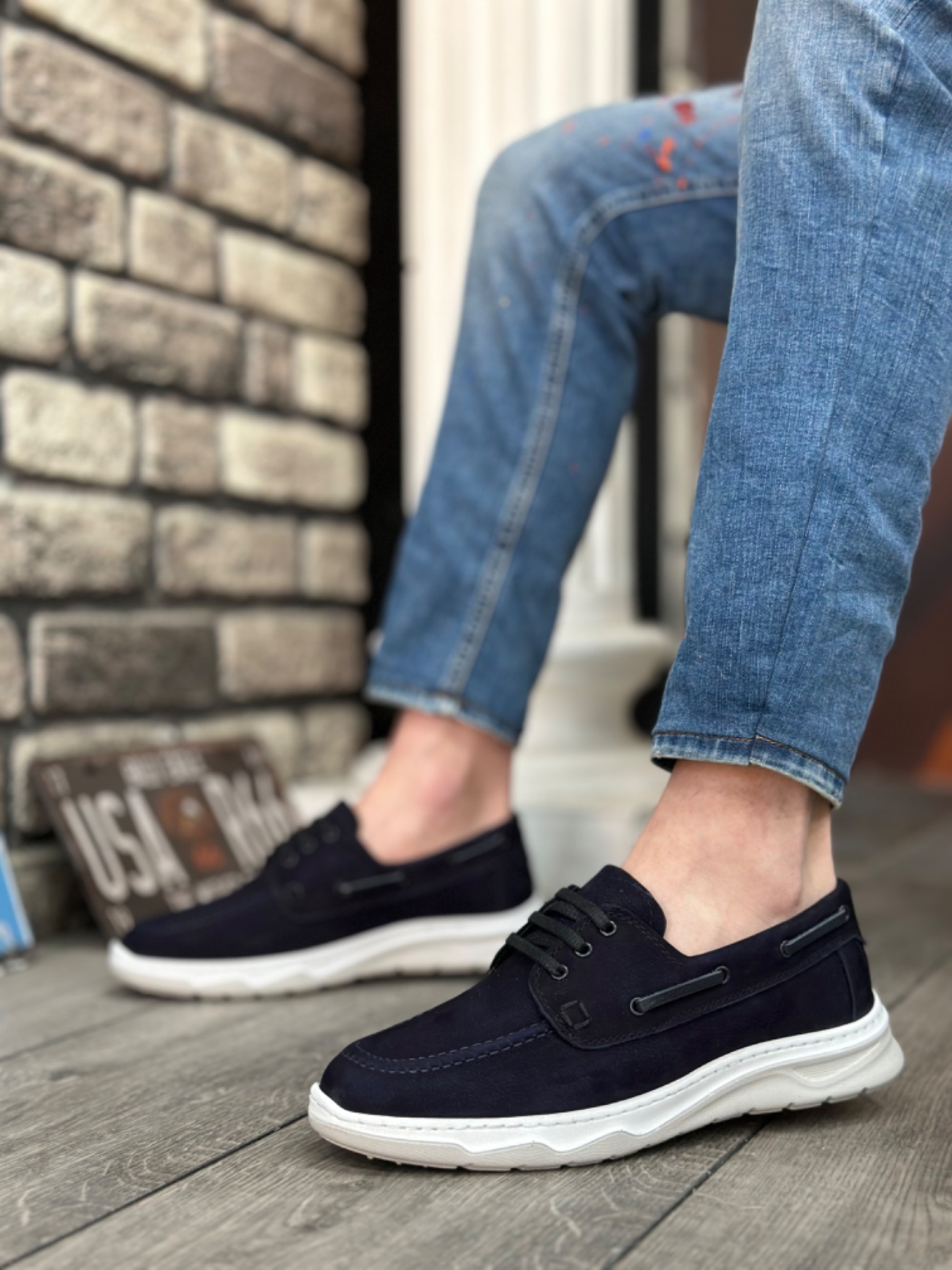 Tarz Erkek Ayakkabı Klasik Ayakkabı MRG0337 İçi Dışı Hakiki Nubuk Deri Classic Lacivert Günlük Erkek Ayakkabı