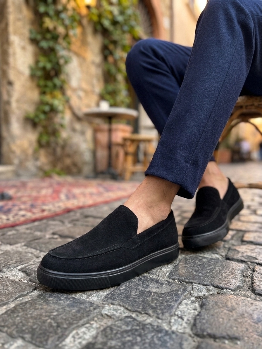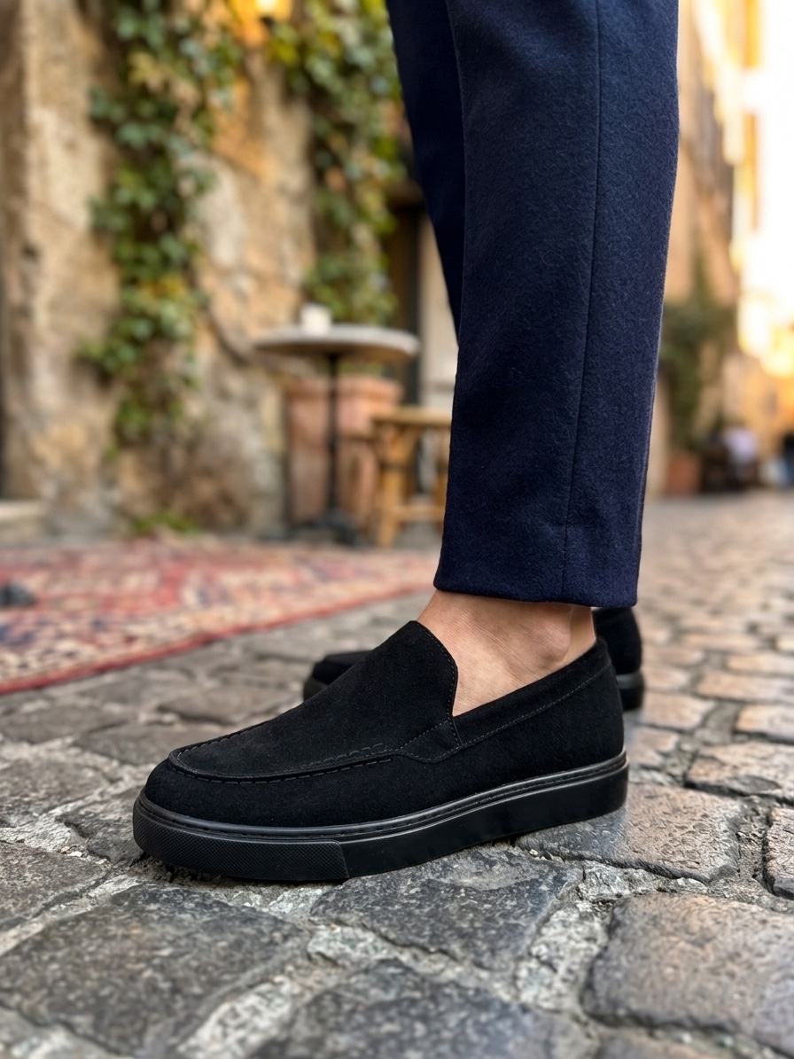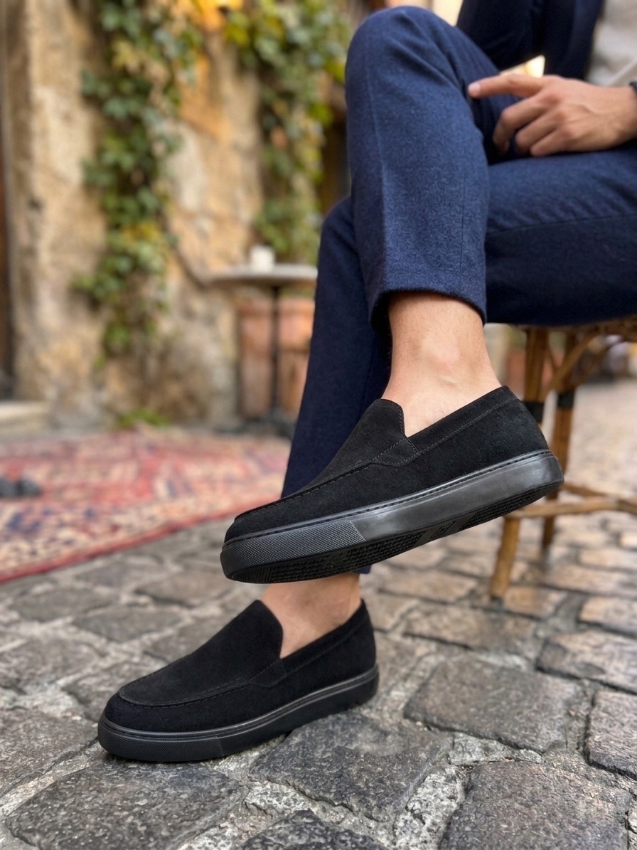 • MRG0241 Bağcıksız Yüksek Siyah Taban Süet Erkek Ayakkabı