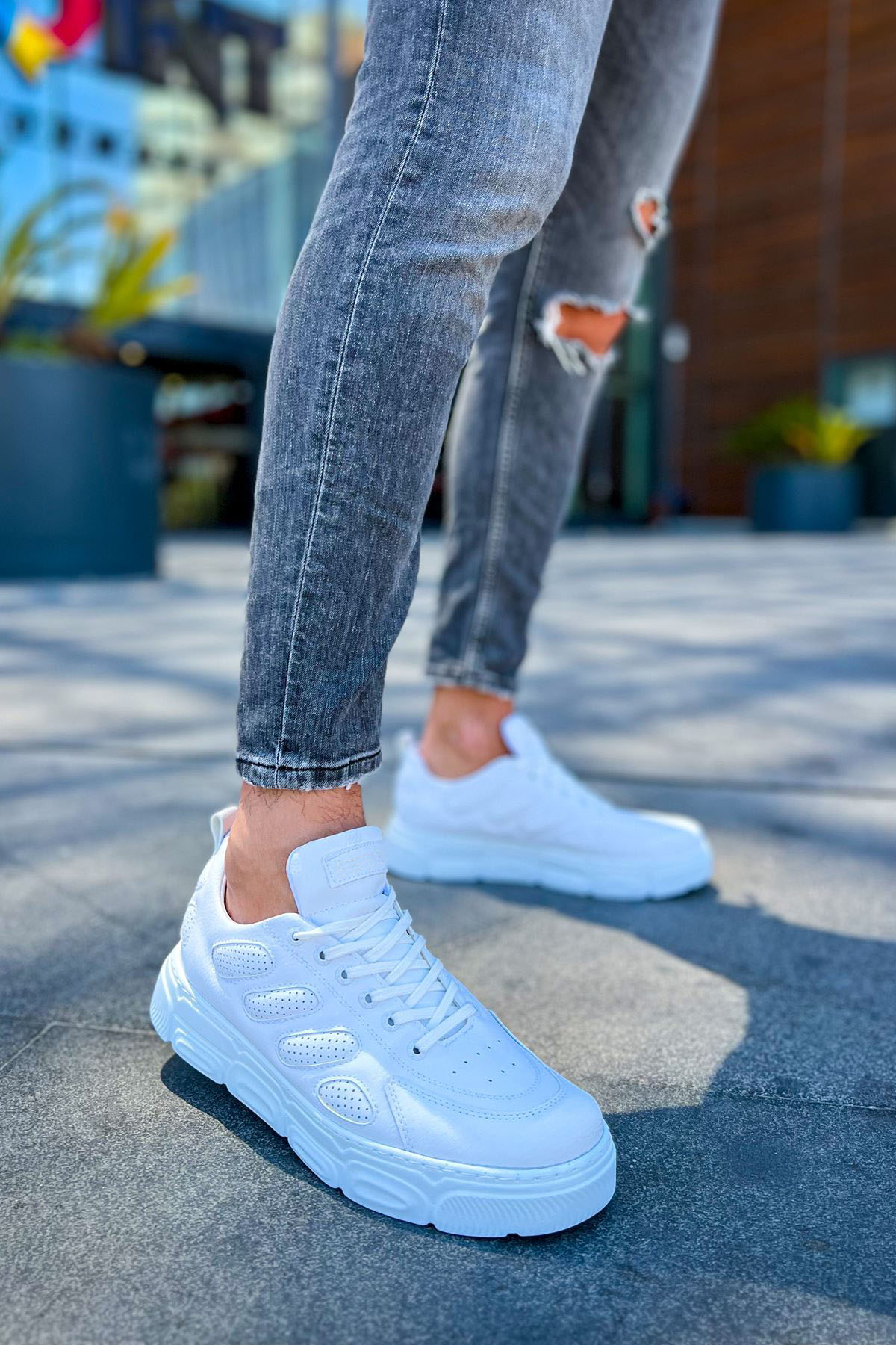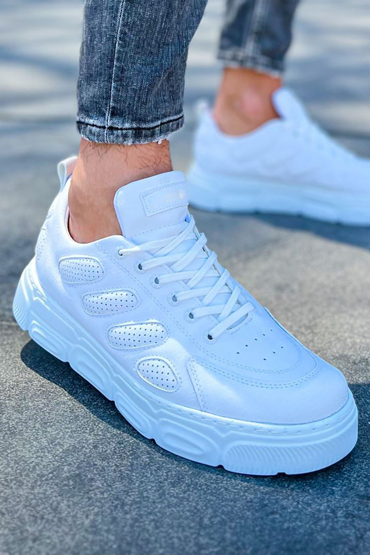 • MirgeShoes Beyaz Bağcıklı Erkek Casual Ayakkabı Yüksek Kalın BYZ Taban MRG01062423