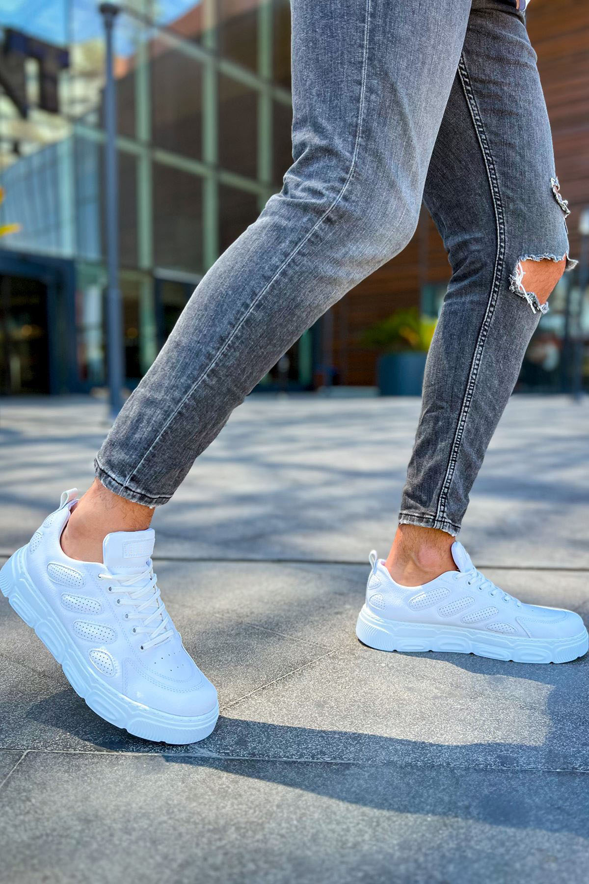 Tarz Erkek Ayakkabı Tarz Ayakkabı MirgeShoes Beyaz Bağcıklı Erkek Casual Ayakkabı Yüksek Kalın BYZ Taban MRG01062423