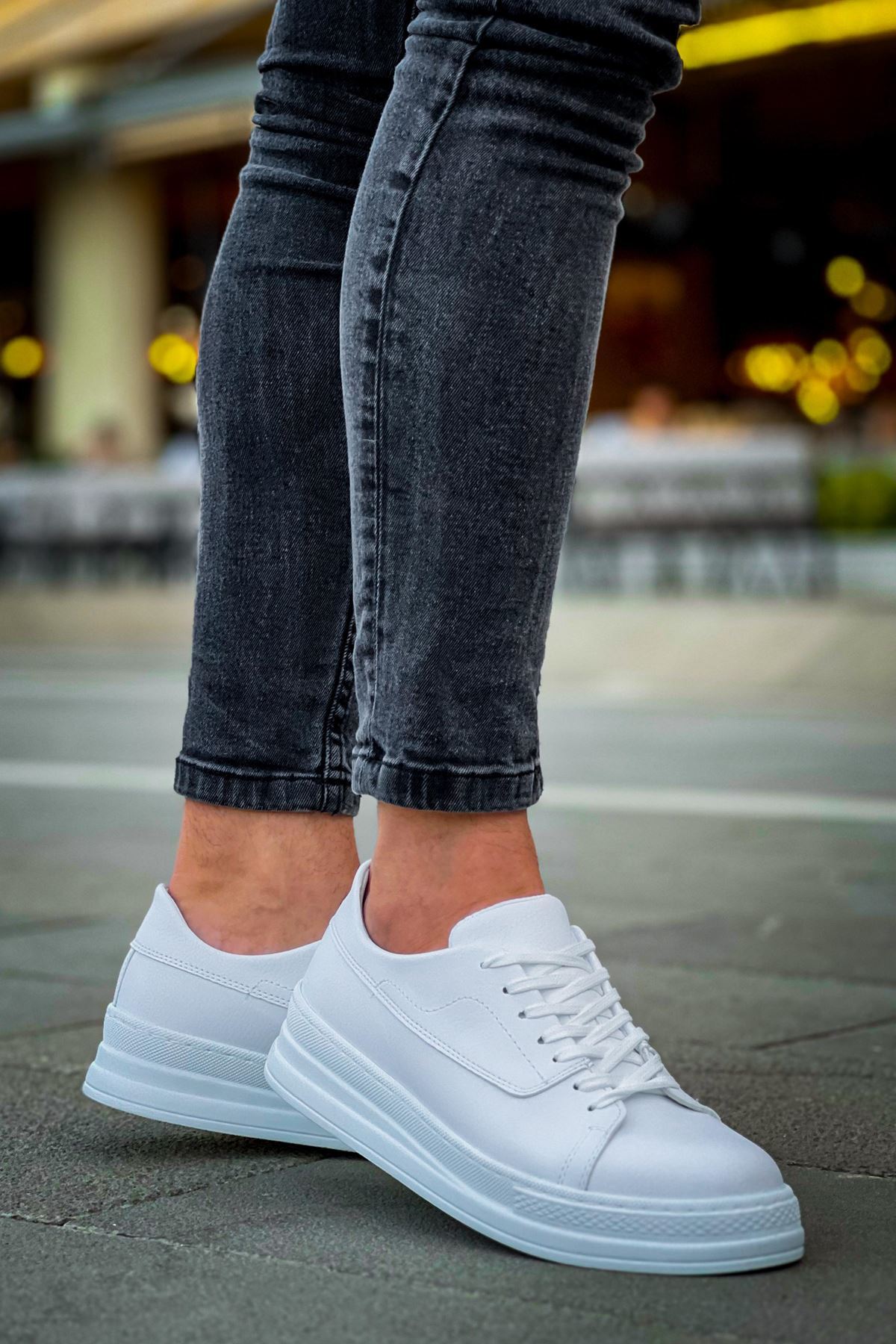 • MirgeShoes Beyaz Bağcıklı Erkek Günlük Casual Ayakkabı Kalın BYZ Taban MRG01064719