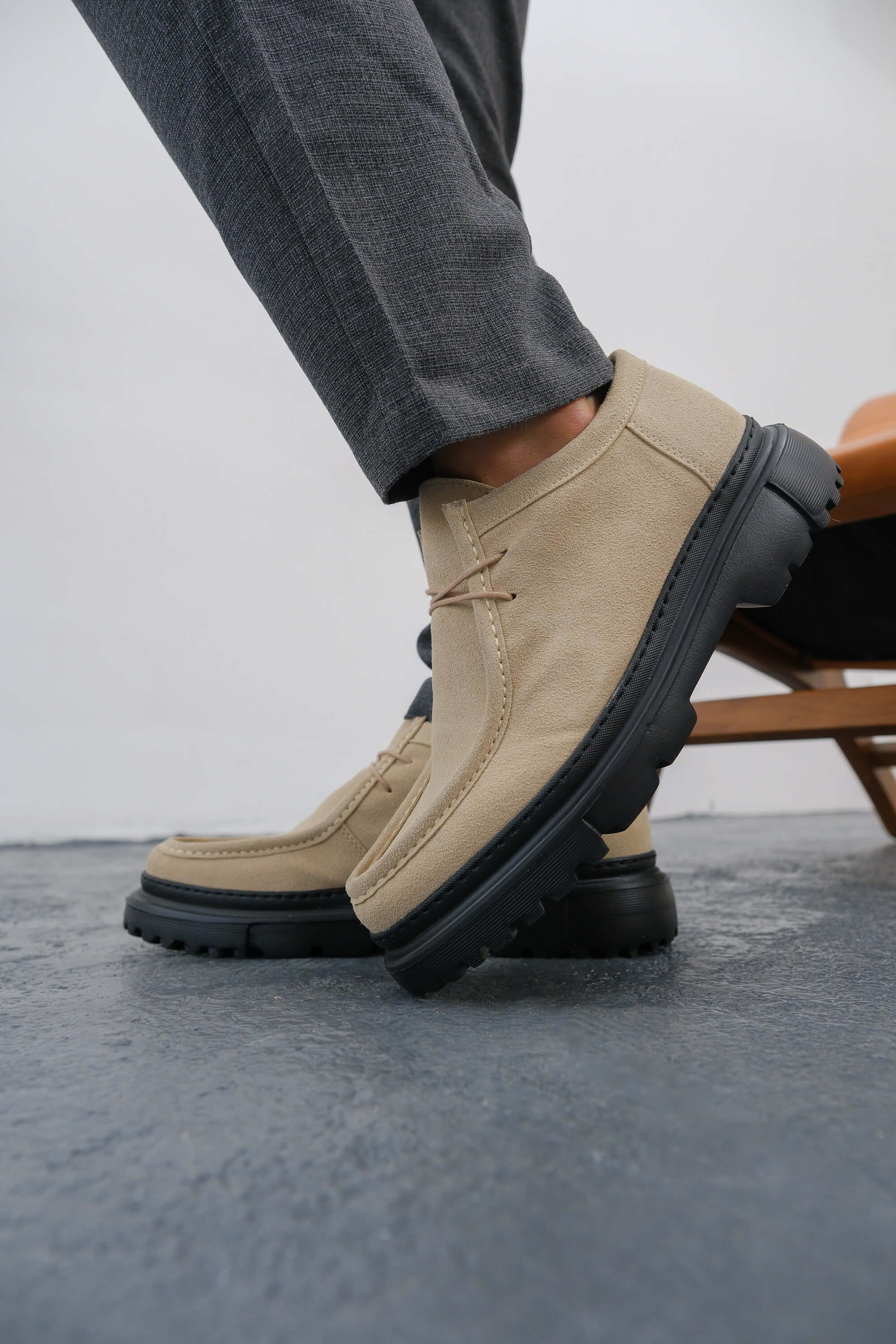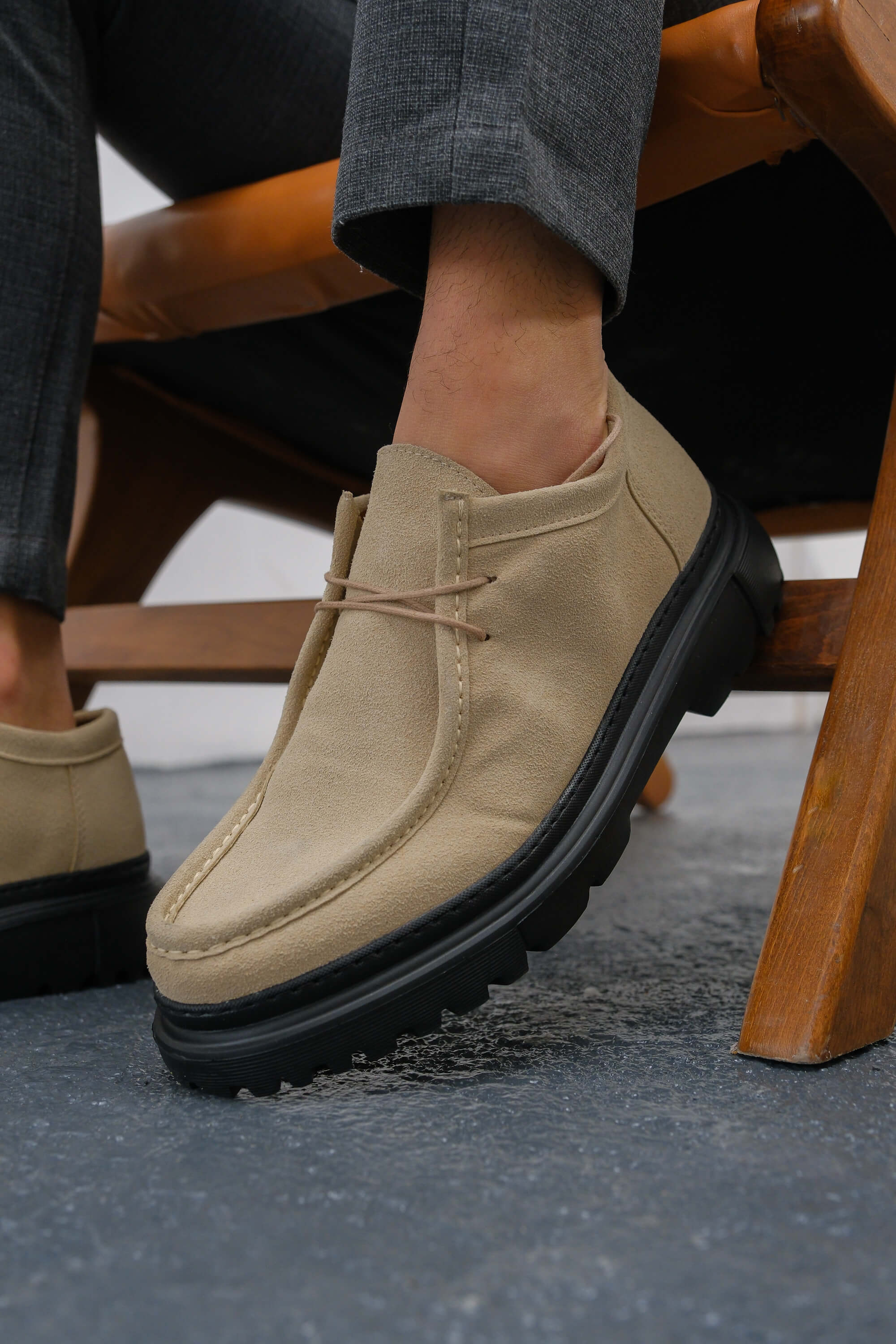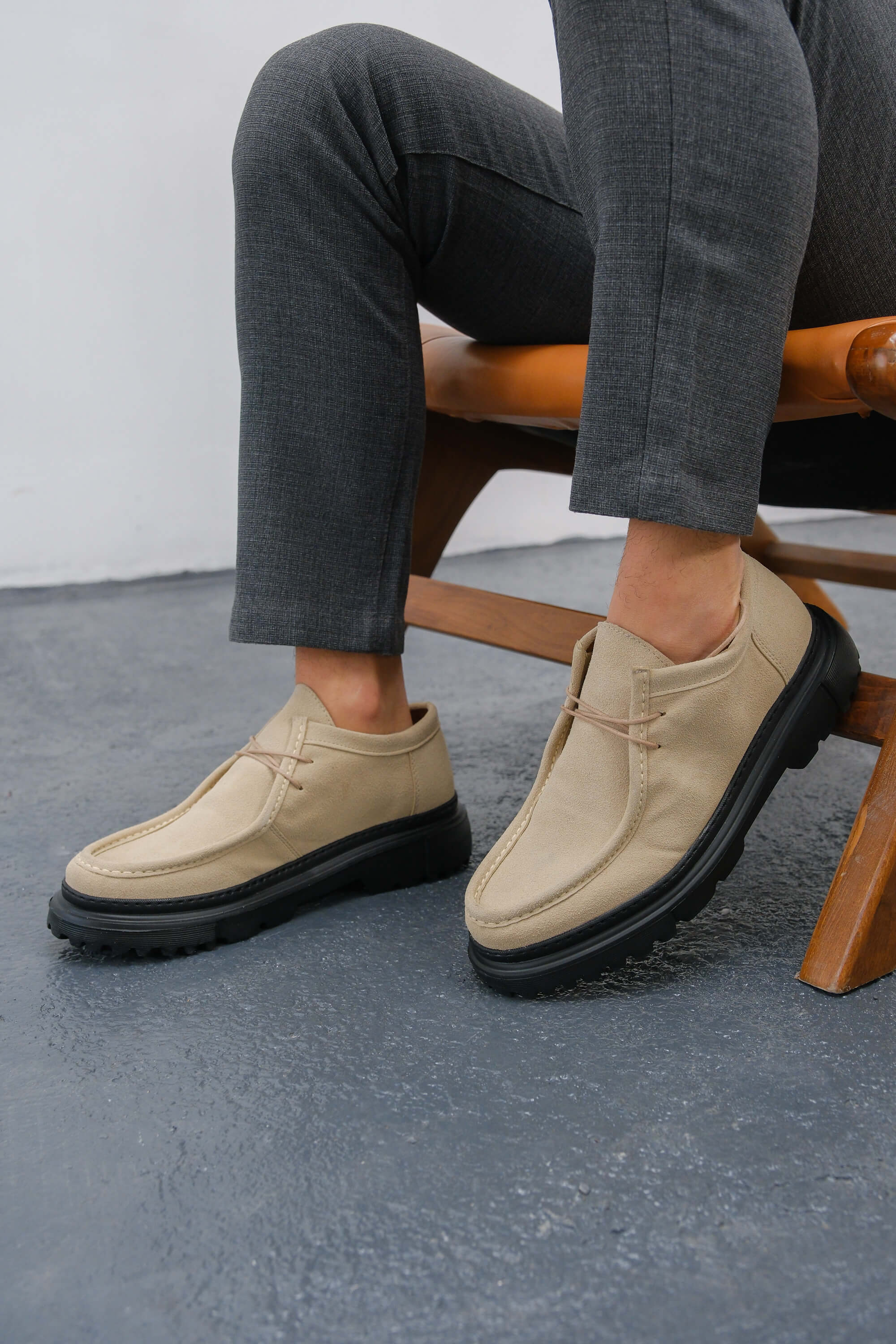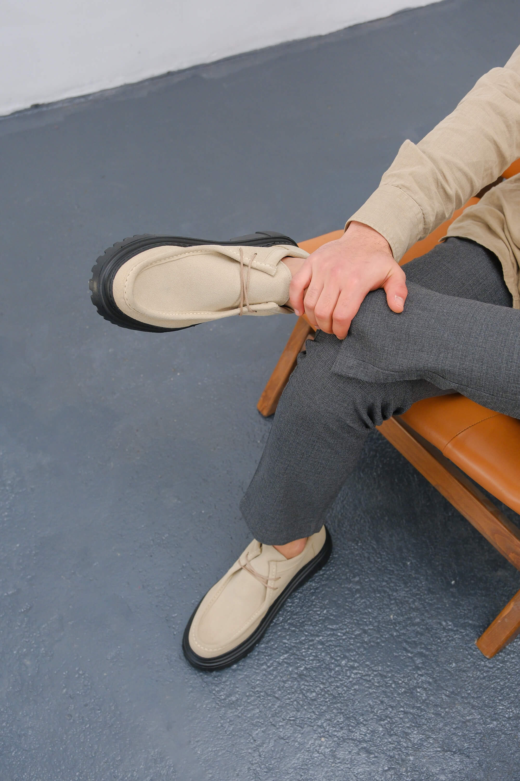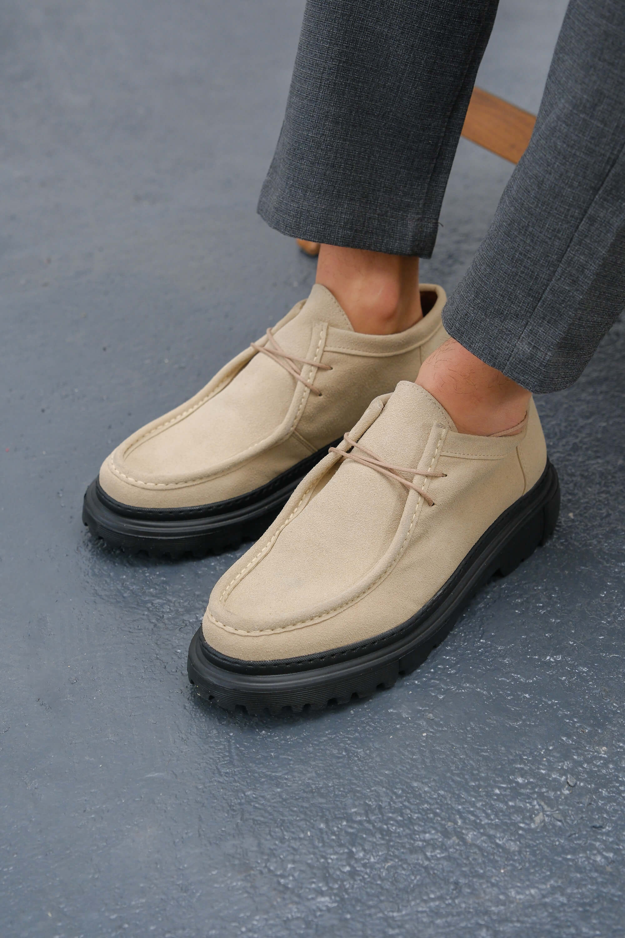 Tarz Erkek Ayakkabı Tarz Ayakkabı MirgeShoes Bej Bağcıklı Erkek Klasik Model Ayakkabı Kalın SYH Taban MRG01064722