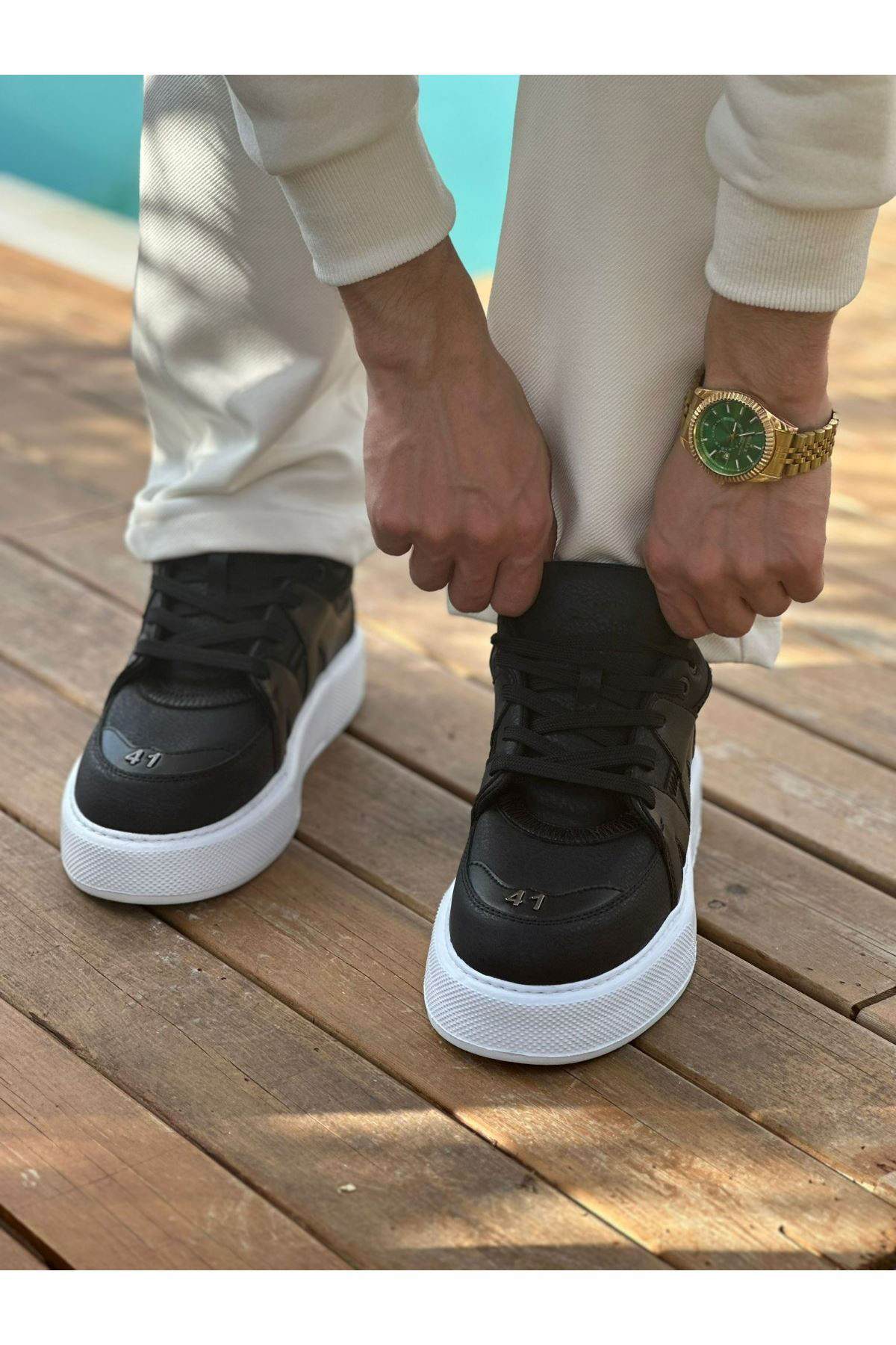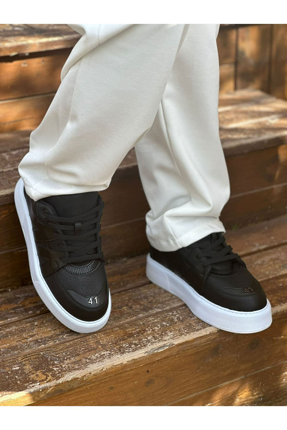 Tarz Erkek Ayakkabı Tarz Ayakkabı MirgeShoes Siyah Bağcıklı Erkek Star Spor Ayakkabı Kalın BYZ Taban MRG01064725