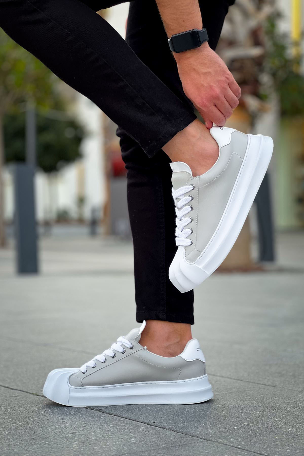 Tarz Erkek Ayakkabı Tarz Ayakkabı MirgeShoes Gri Bağcıklı Erkek Günlük Ayakkabı Rahat Kalın BYZ Taban MRG01064729
