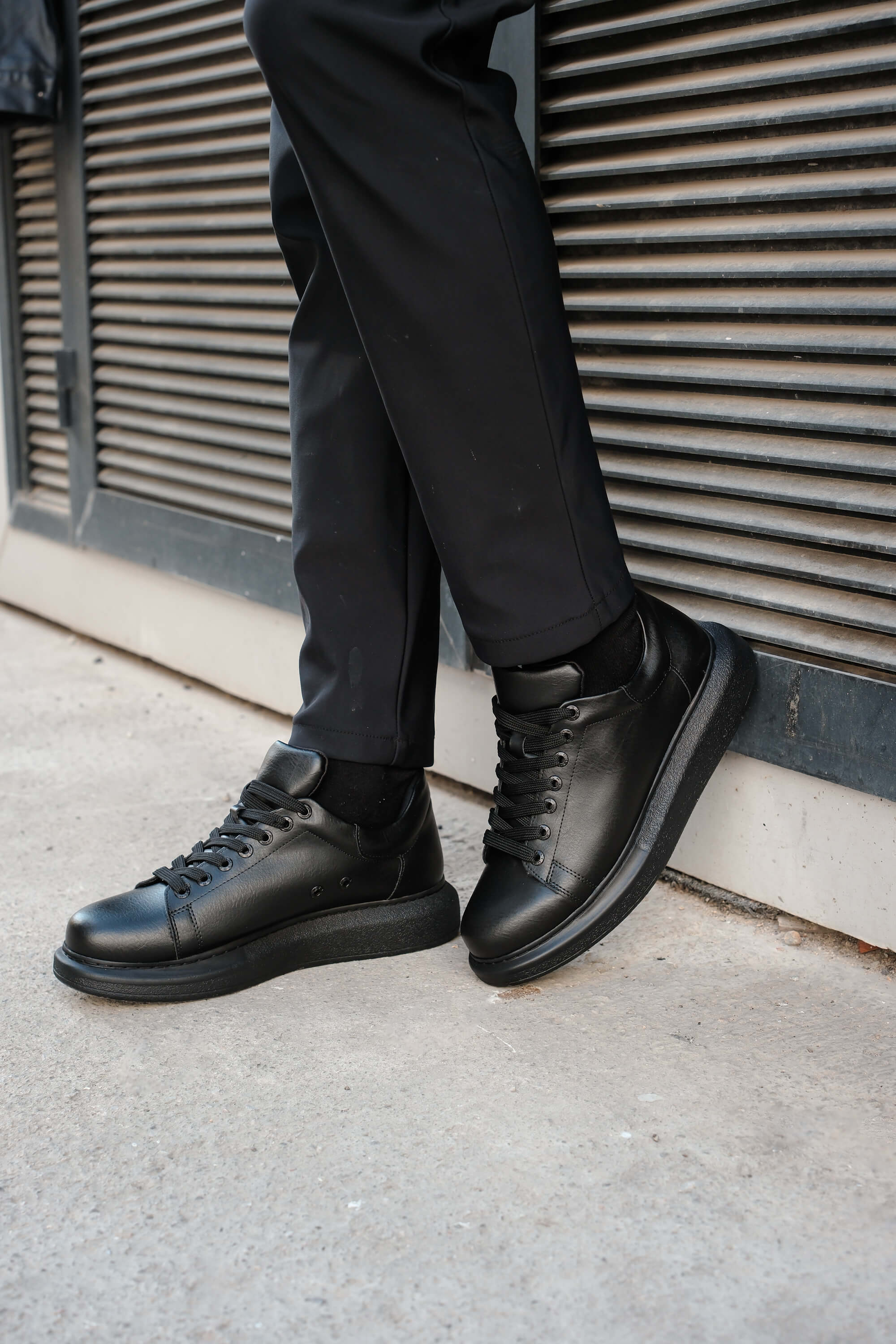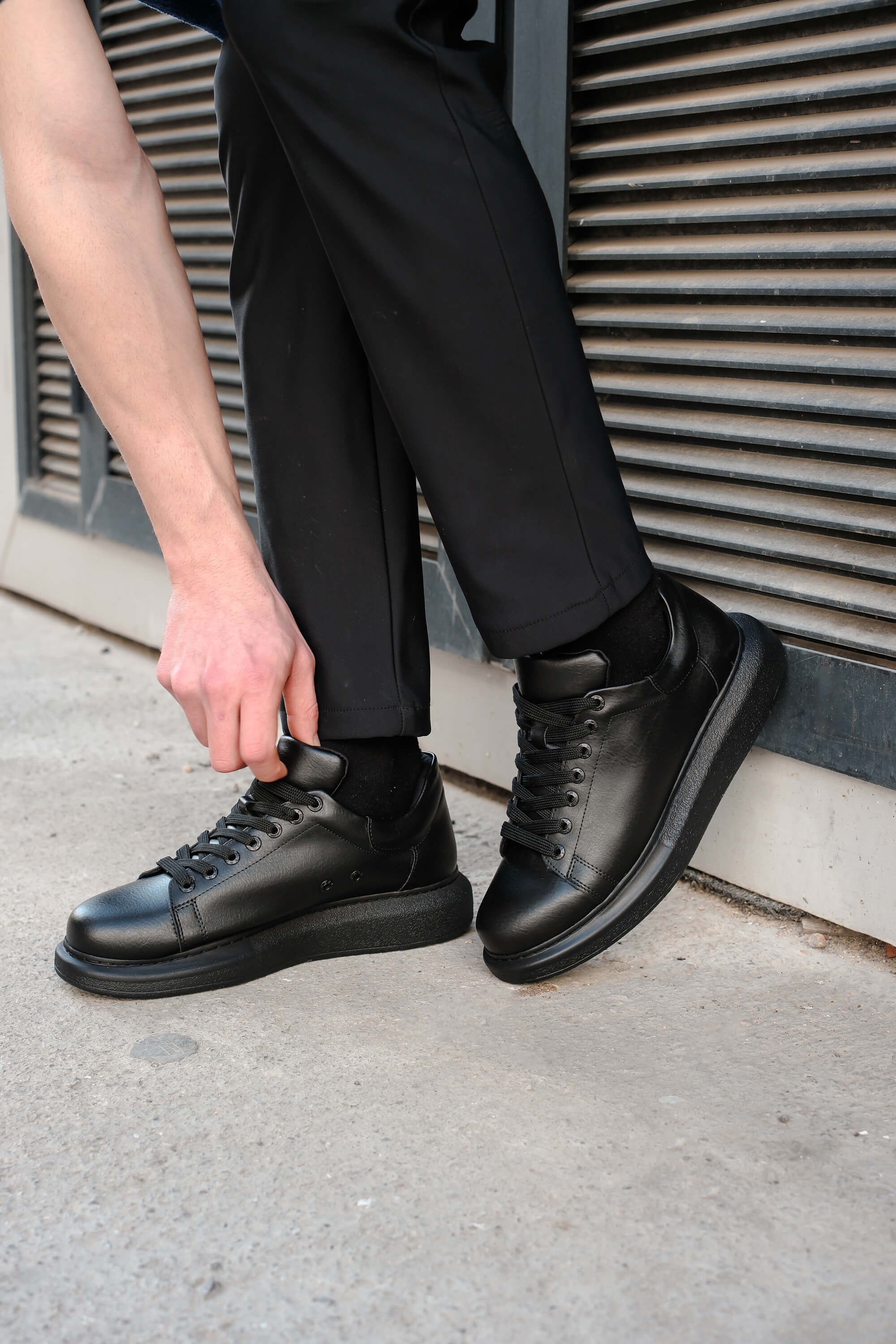 MirgeShoes Siyah Bağcıklı Unisex Günlük Ayakkabı Yüksek Kalın SYH Taban MRG01062575