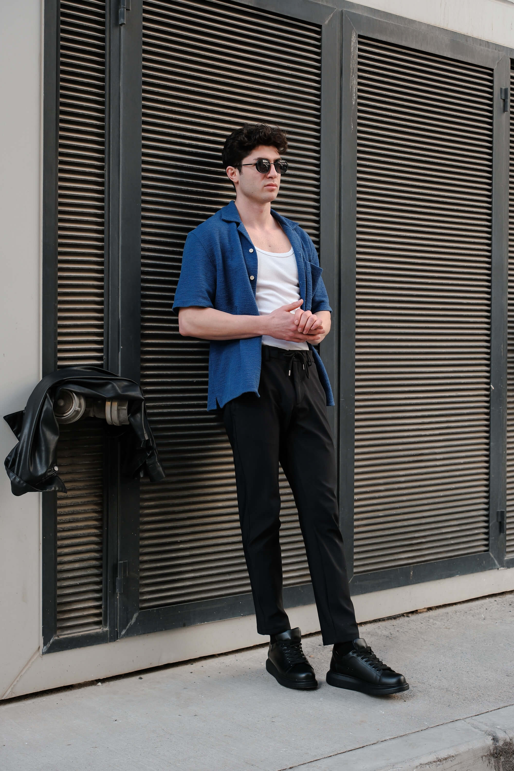 Tarz Erkek Ayakkabı Tarz Ayakkabı MirgeShoes Siyah Bağcıklı Unisex Günlük Ayakkabı Yüksek Kalın SYH Taban MRG01062575