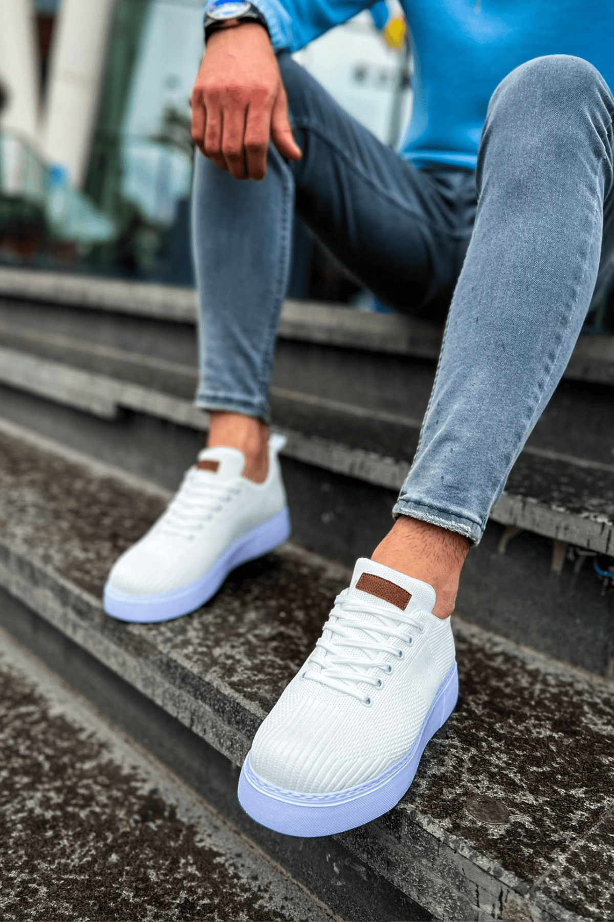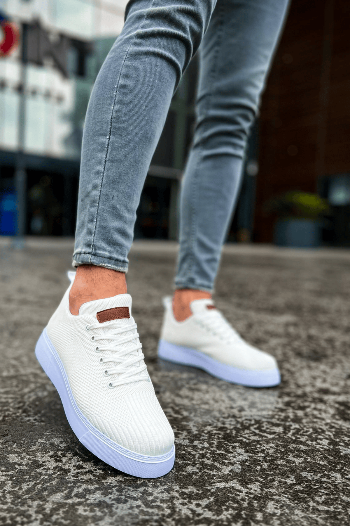 Tarz Erkek Ayakkabı Tarz Ayakkabı MirgeShoes Beyaz Bağcıklı Erkek Spor Ayakkabı Günlük Rahat Yüksek BYZ Taban MRG01062731