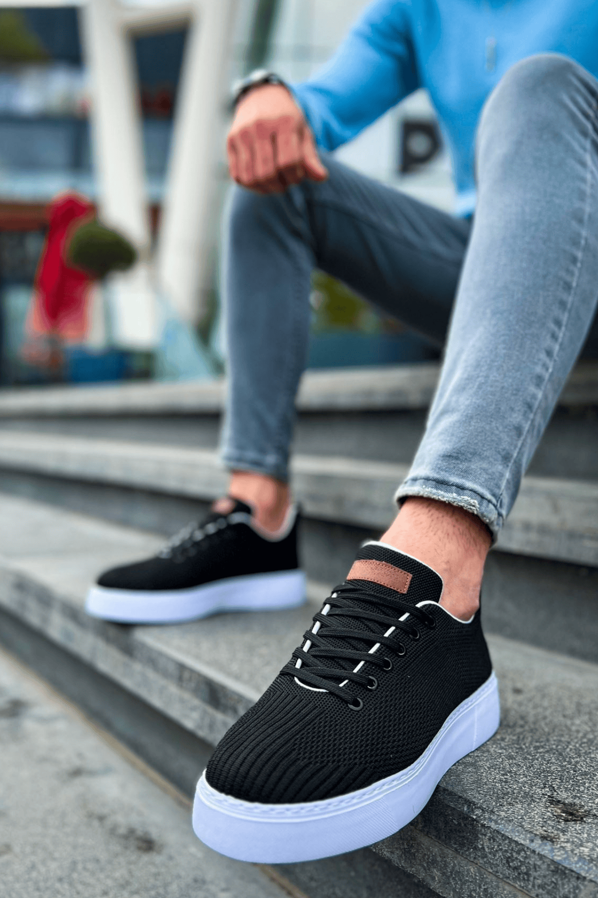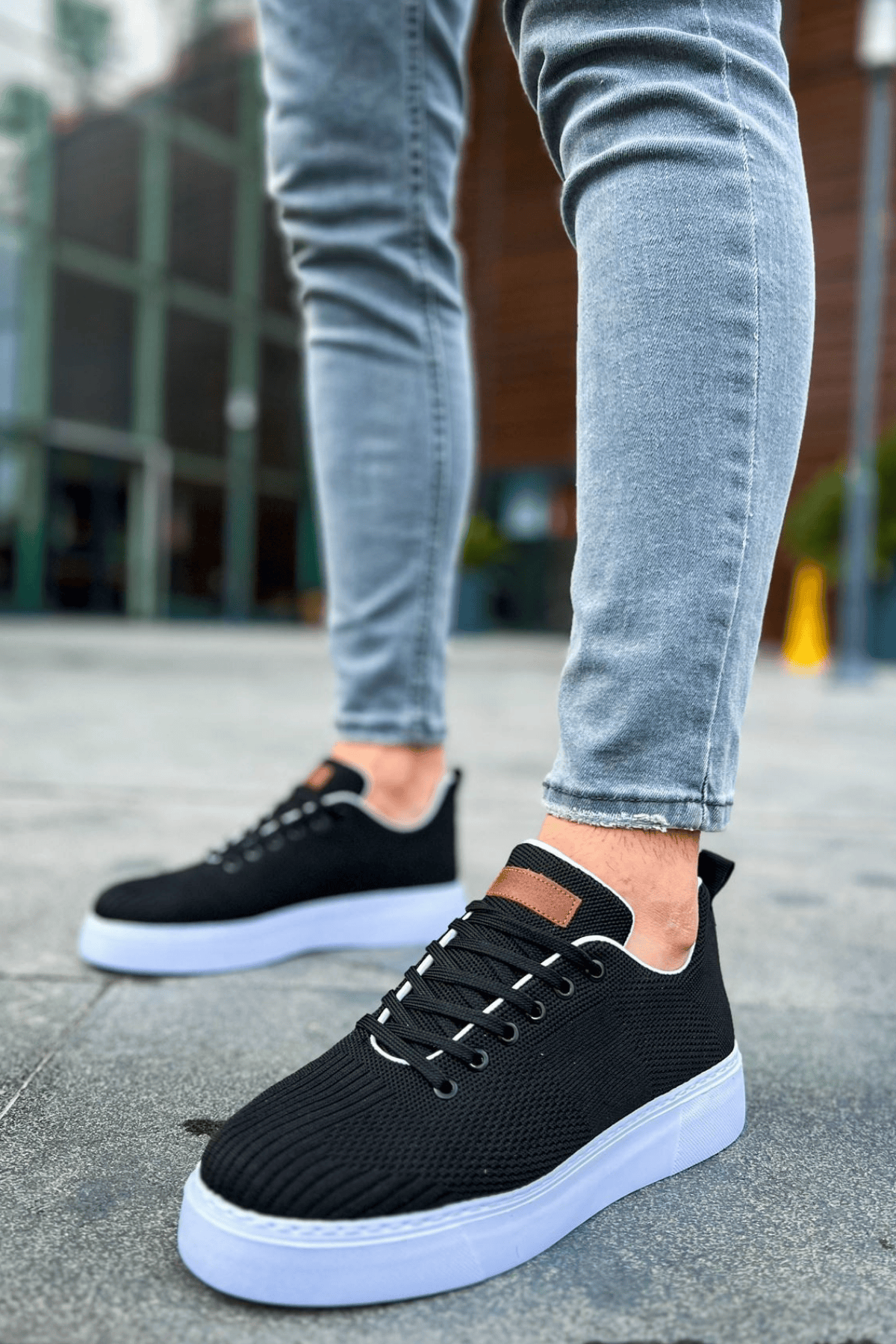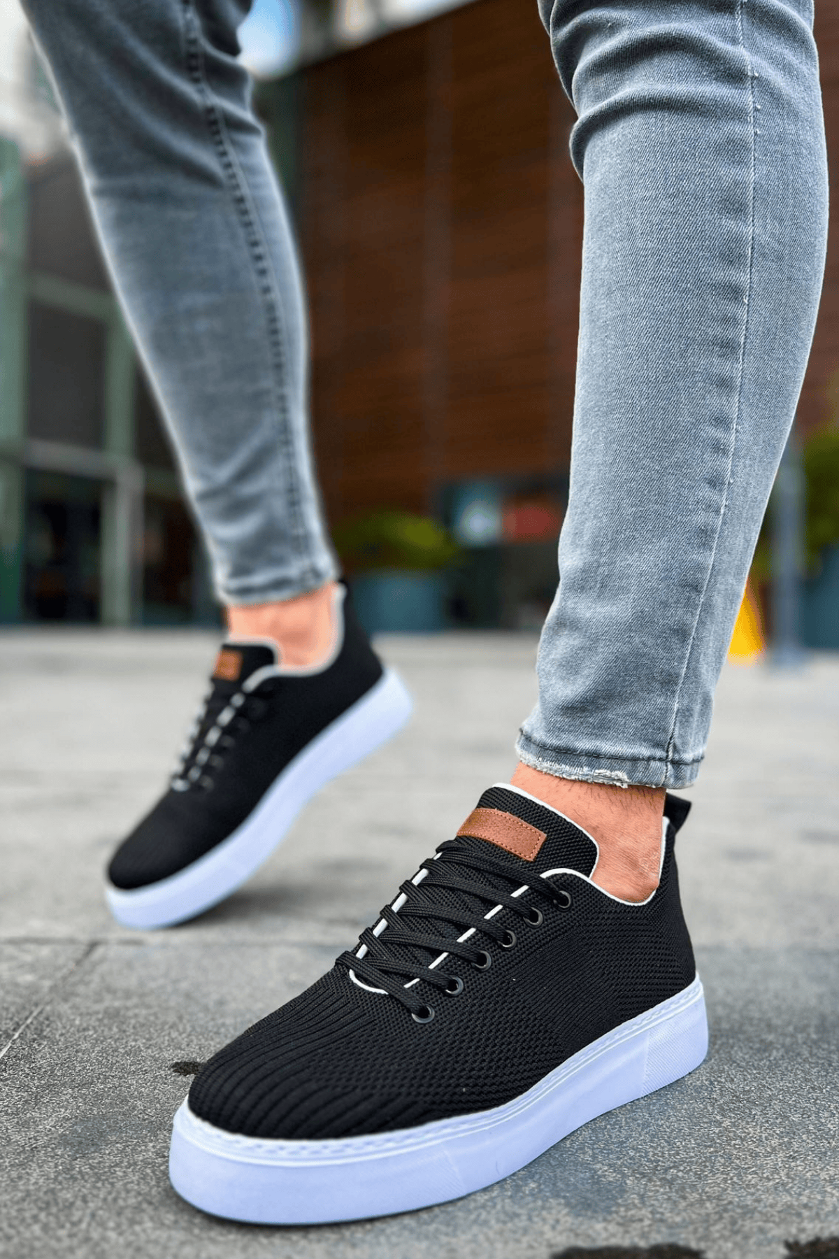 Tarz Erkek Ayakkabı Tarz Ayakkabı MirgeShoes Siyah Bağcıklı Erkek Spor Ayakkabı Günlük Rahat Yüksek BYZ Taban MRG01062731