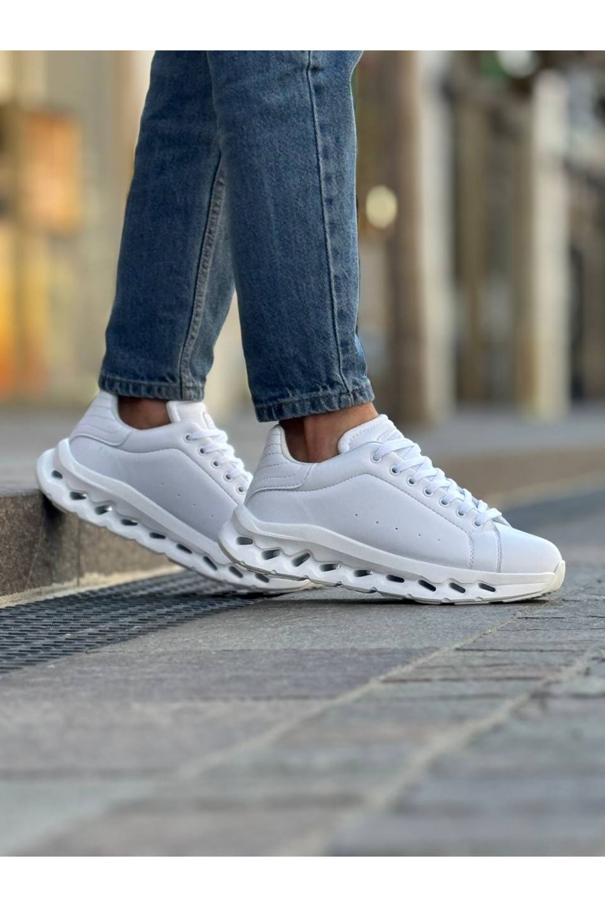 • MirgeShoes Beyaz Bağcıklı Erkek Tarz Casual Ayakkabı Platfrom Kalın BYZ Taban MRG01064851