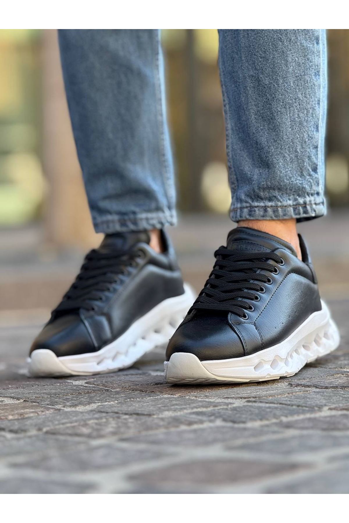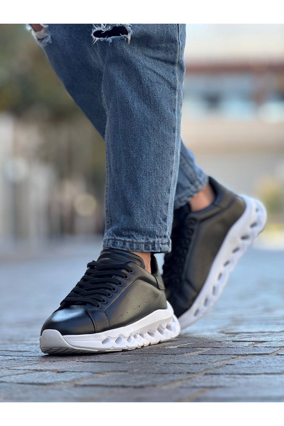 • MirgeShoes Siyah Bağcıklı Erkek Tarz Casual Ayakkabı Platfrom Kalın BYZ Taban MRG01064851