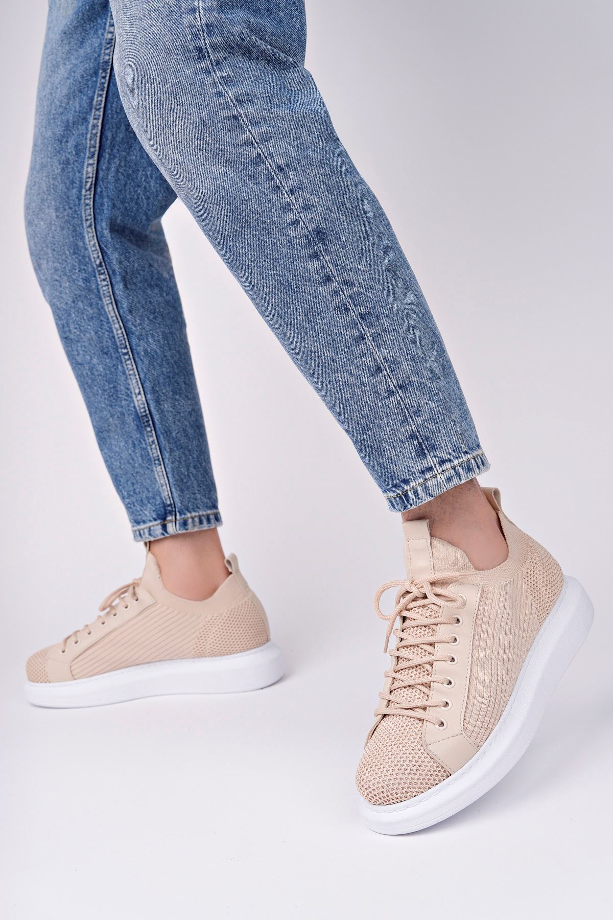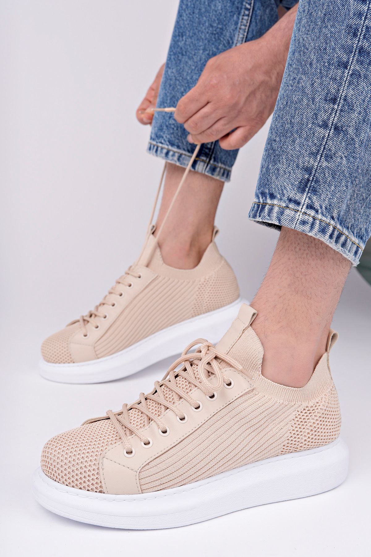 MirgeShoes Bej Bağcıklı Erkek Casual Ayakkabı Rahat Kalın BYZ Taban MRG01062937