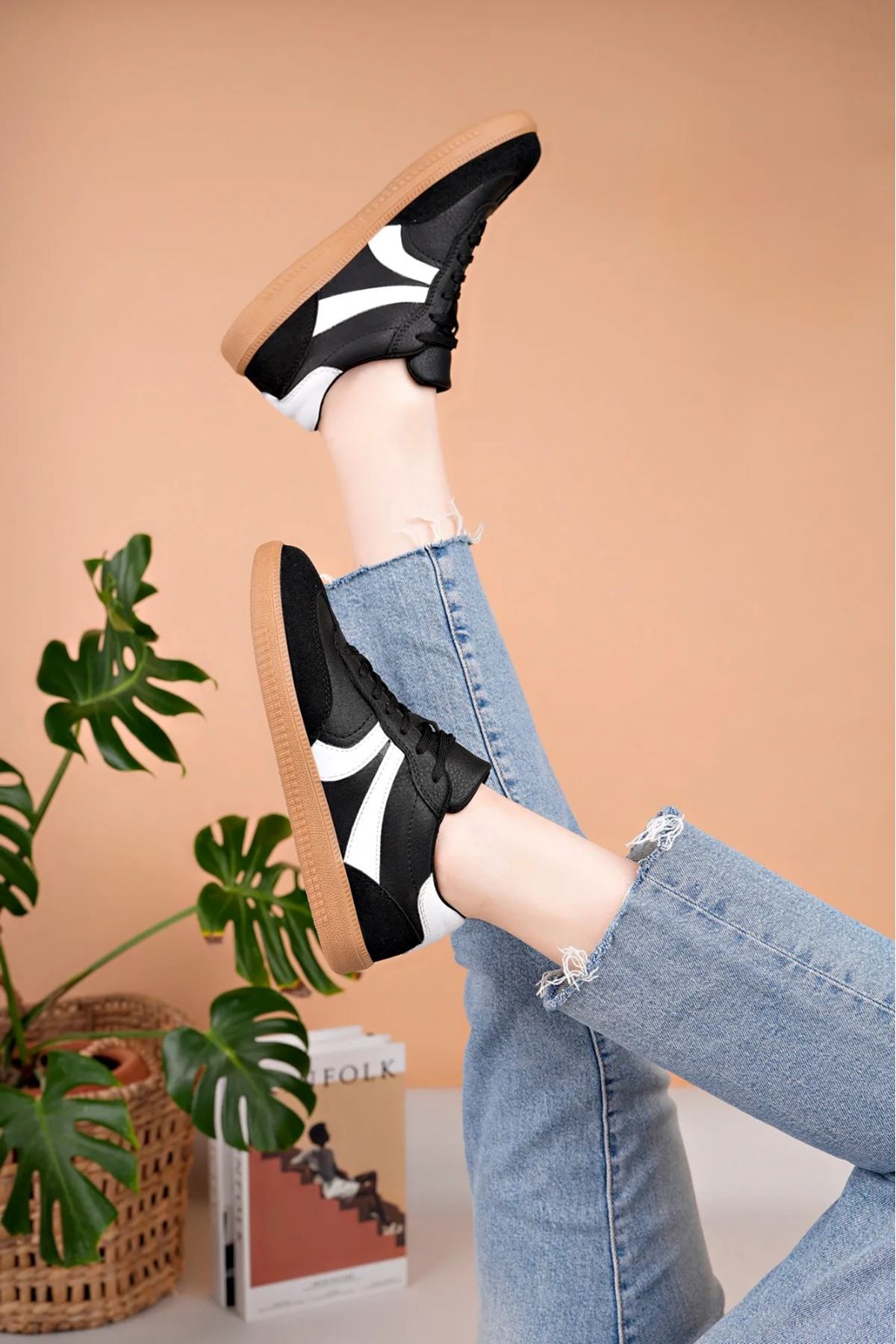 MirgeShoes Siyah-Beyaz Bağcıklı Kadın Günlük Spor Ayakkabı Rahat KHV Taban MRG01062939