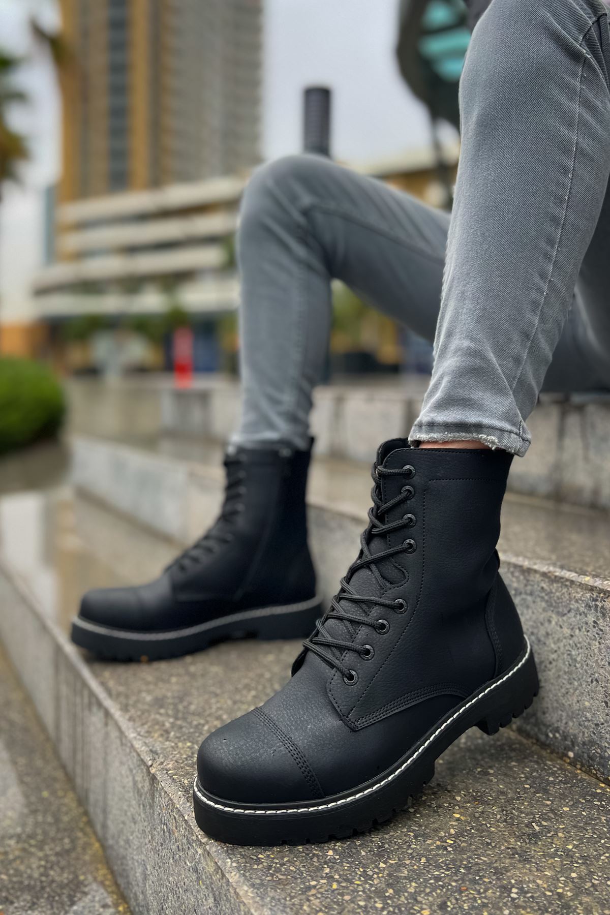 Tarz Erkek Ayakkabı Tarz Bot MirgeShoes Siyah Bağcıklı Erkek Military Bot Yüksek Kalın SYH Taban MRG0106002327