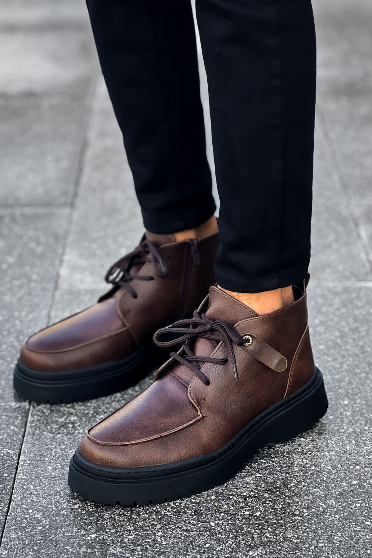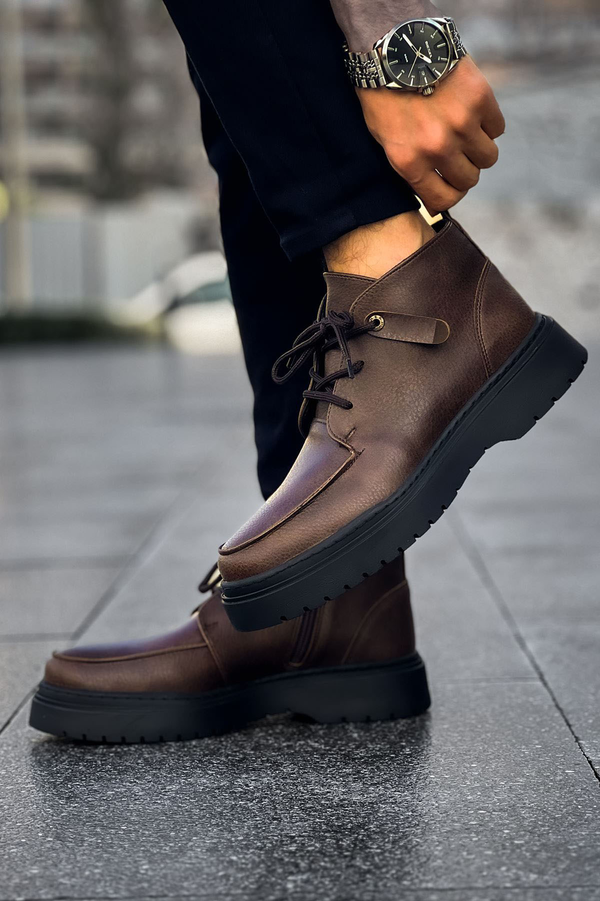 MirgeShoes Kahve Bağcıklı Fermuarlı Erkek Yarım Bilek Bot Kalın SYH Taban MRG01062531