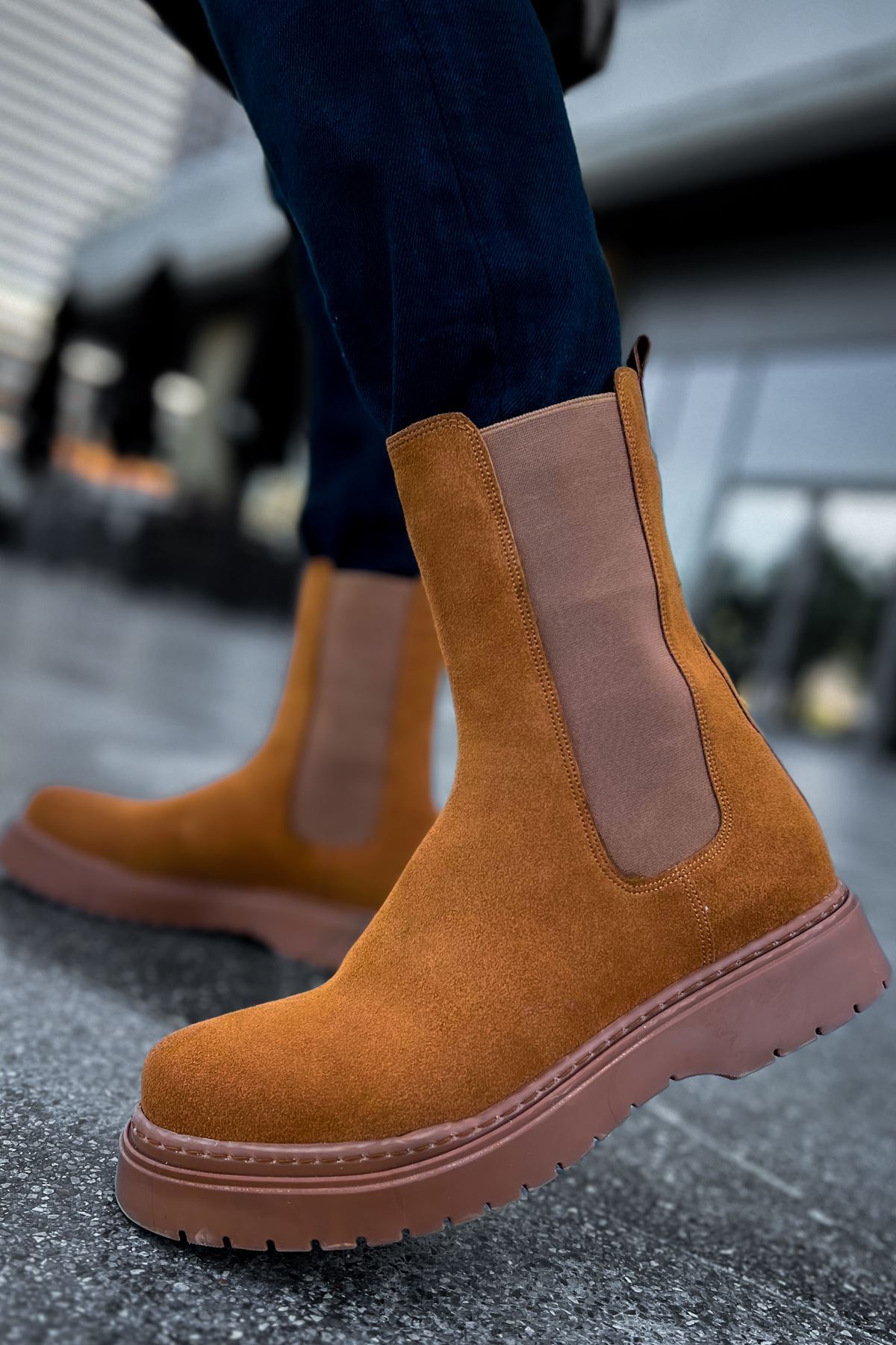 Tarz Erkek Ayakkabı Tarz Bot MirgeShoes Taba Lastikli Erkek Postal Bot Süet Kalın TB Taban MRG01062541