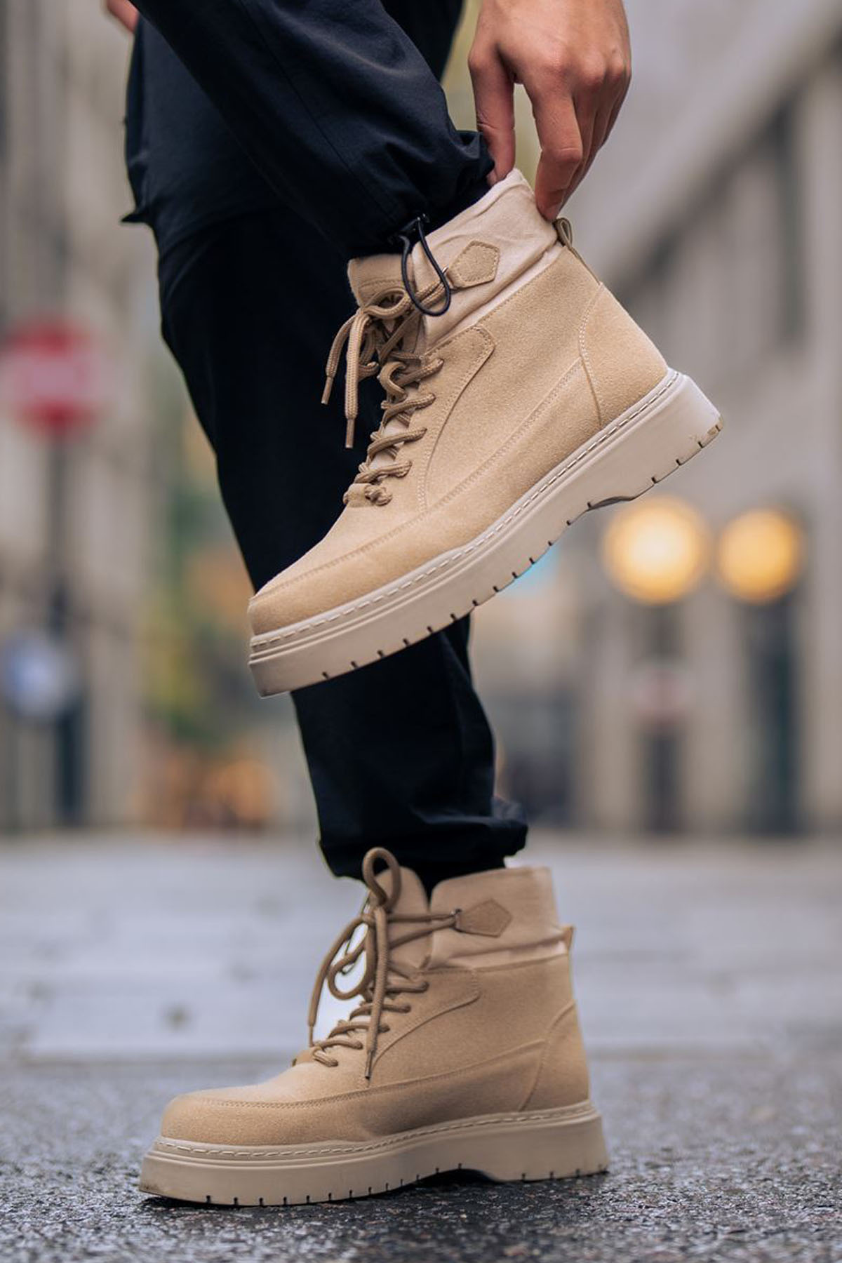 • MirgeShoes Kum Bağcıklı Erkek Yarım Bilek Tarz Model Kalın KRM Taban MRG01062543
