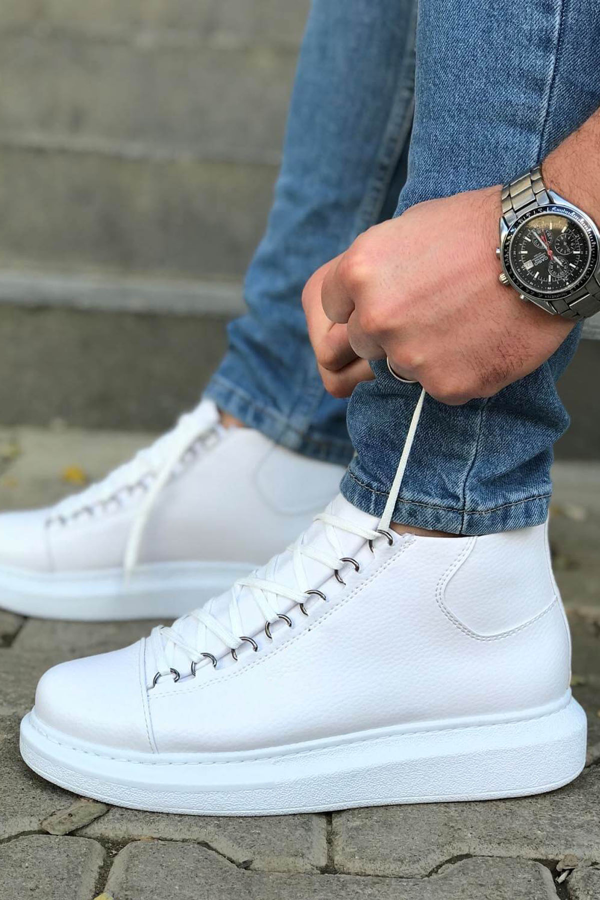 MirgeShoes Beyaz Çengel Bağcıklı Erkek Yarım Bilek Bot Kalın BYZ Taban MRG01062576
