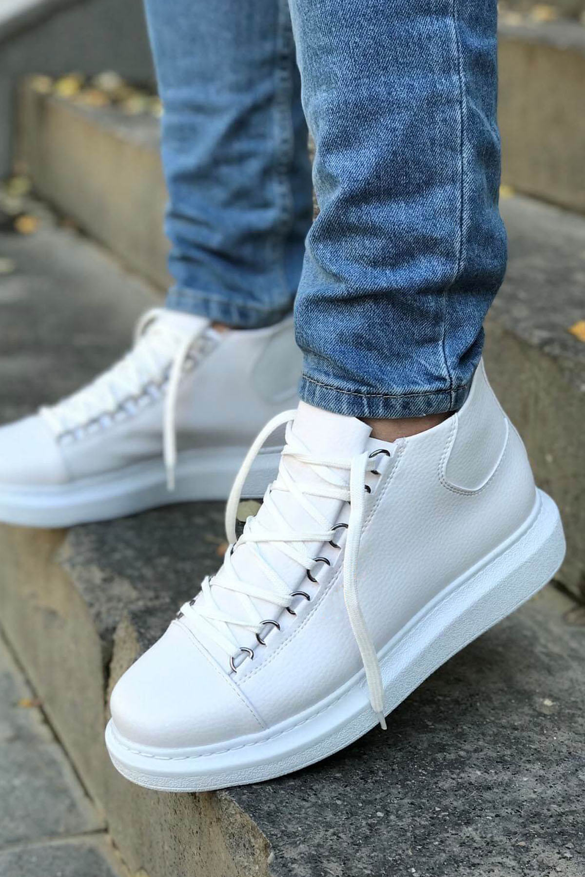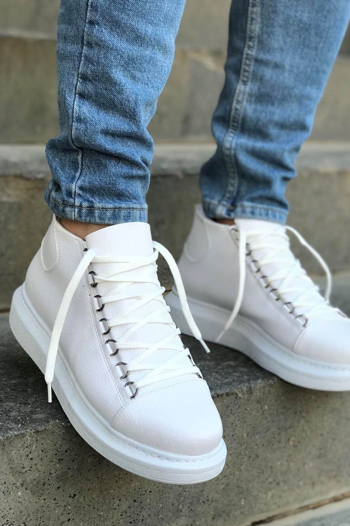 • MirgeShoes Beyaz Çengel Bağcıklı Erkek Yarım Bilek Bot Kalın BYZ Taban MRG01062576