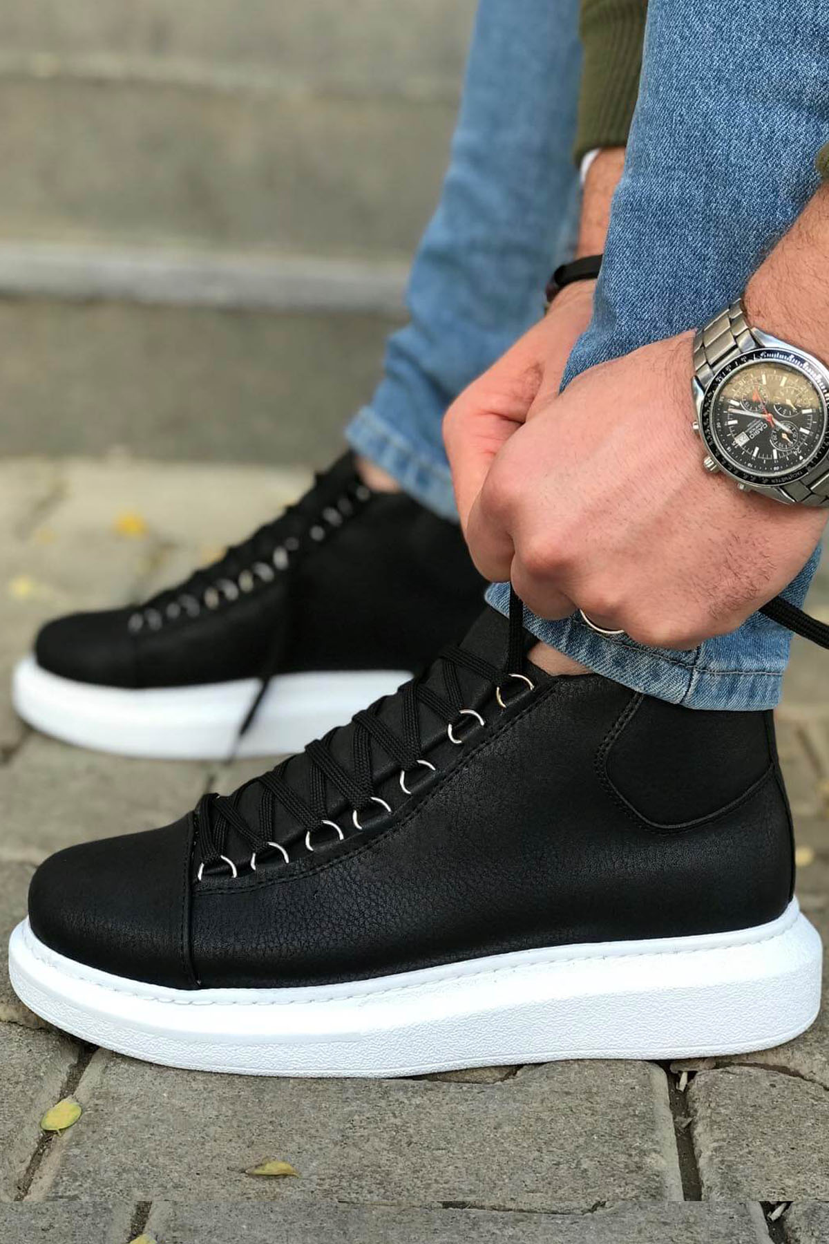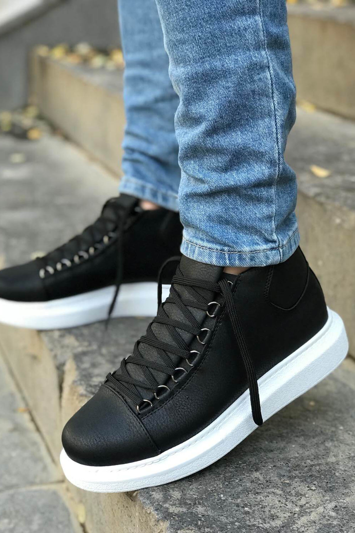 MirgeShoes Siyah Çengel Bağcıklı Erkek Yarım Bilek Bot Kalın BYZ Taban MRG01062576