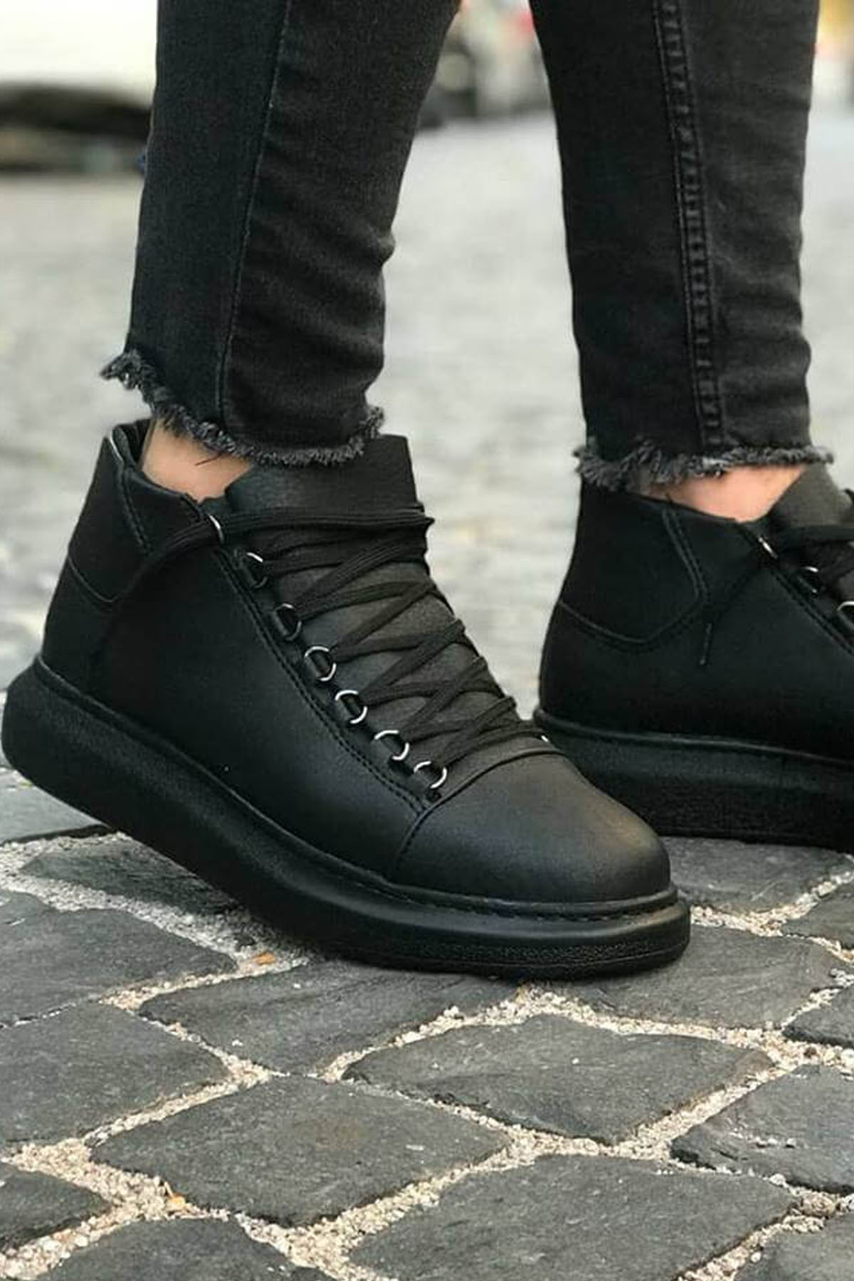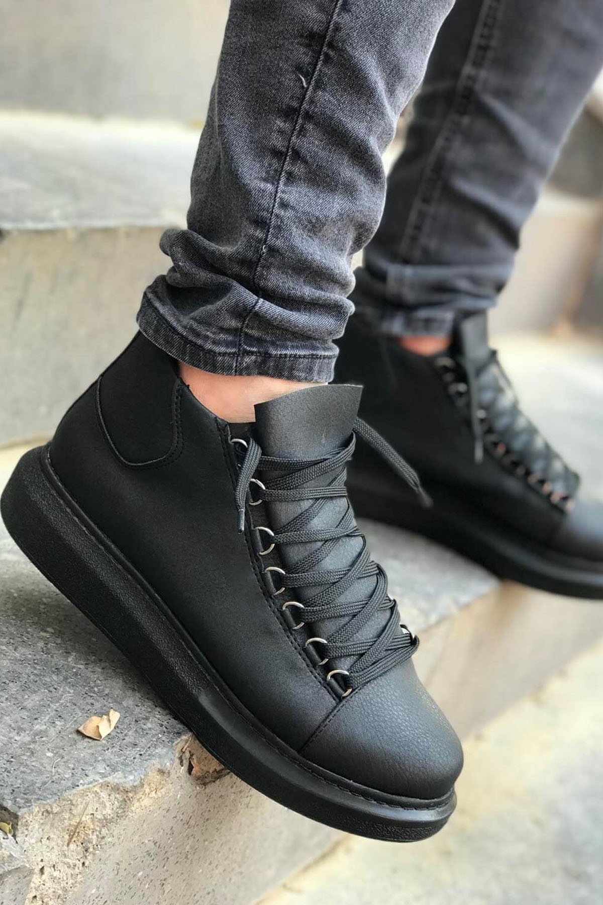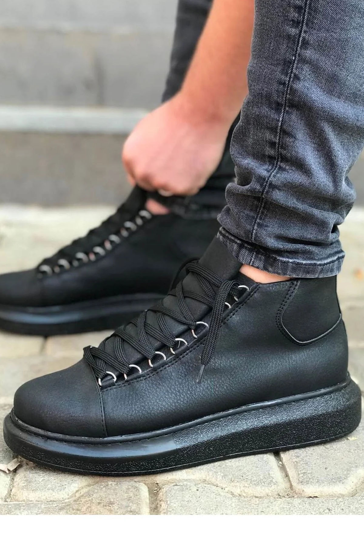 • MirgeShoes Siyah Çengel Bağcıklı Erkek Yarım Bilek Bot Kalın SYH Taban MRG01062576