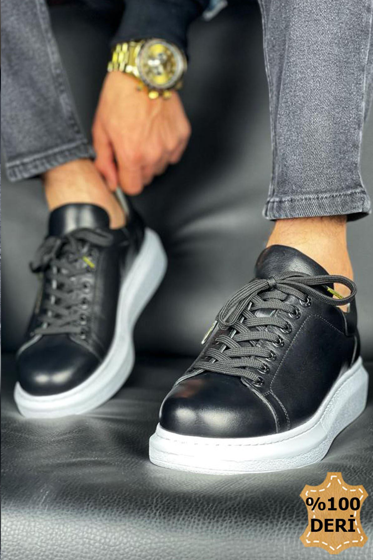 Tarz Erkek Ayakkabı Tarz Deri Ayakkabı MirgeShoes Siyah Bağcıklı Unisex Günlük Spor Ayakkabı Yüksek Kalın BYZ Taban MRG01062575