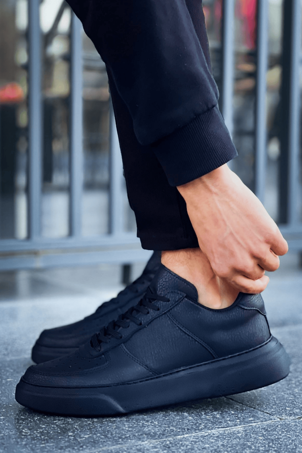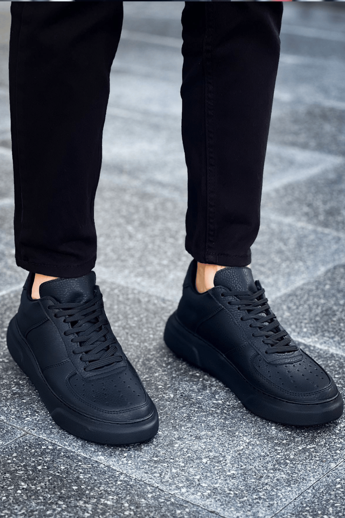 MirgeShoes Siyah Bağcıklı Erkek Spor Ayakkabı Düz Model Kalın SYH Taban MRG010602405