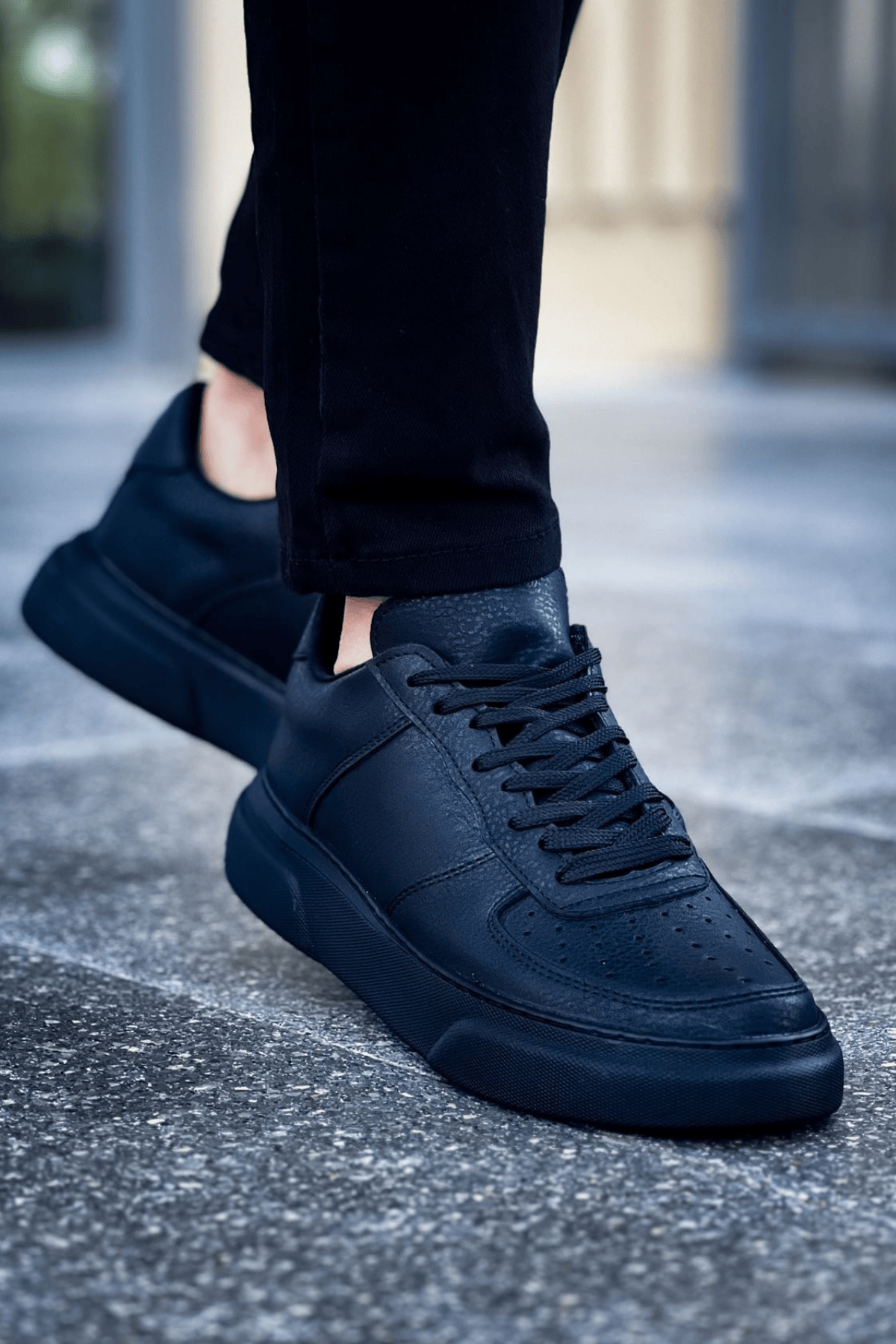 • MirgeShoes Siyah Bağcıklı Erkek Spor Ayakkabı Düz Model Kalın SYH Taban MRG010602405