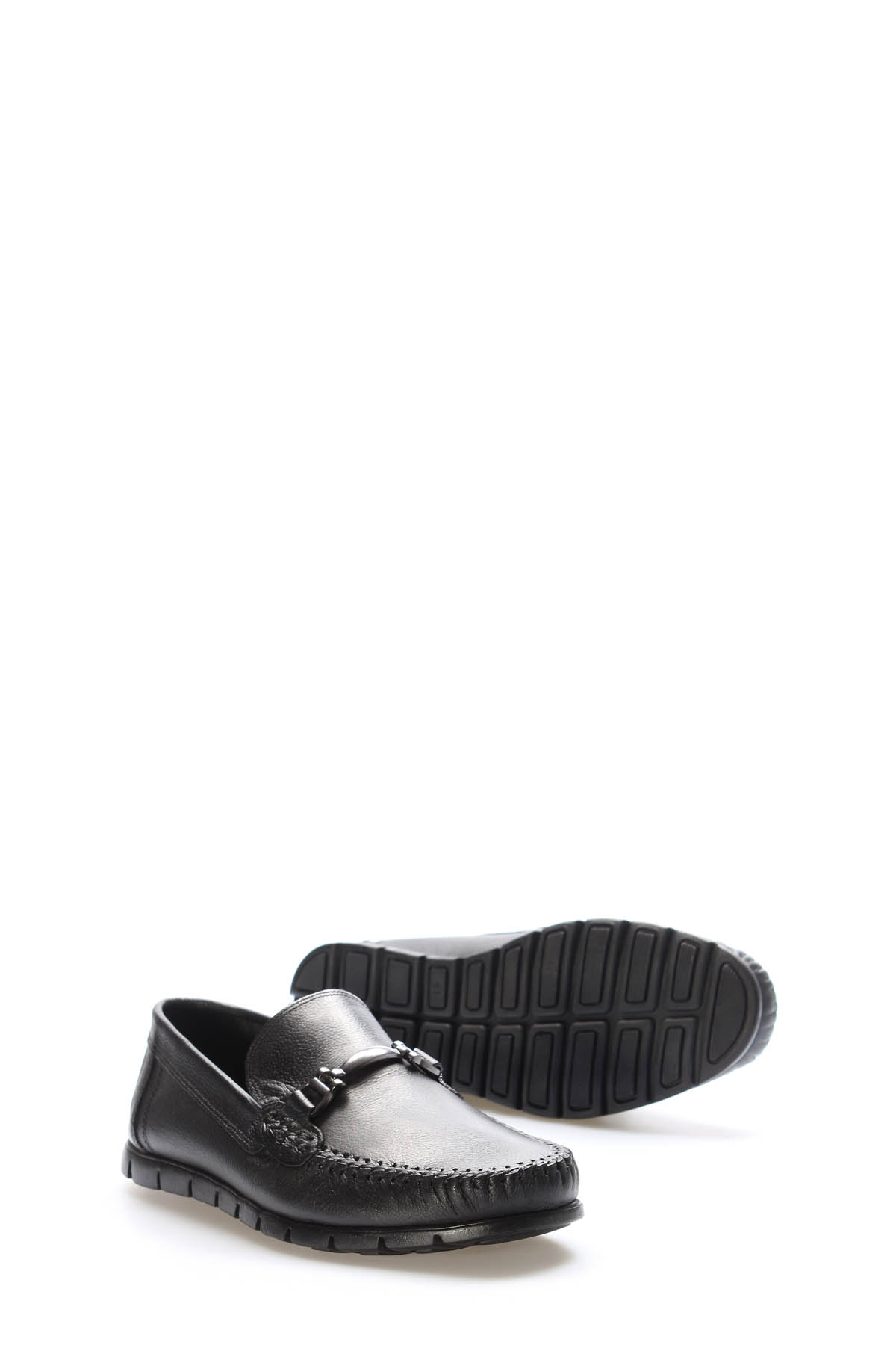 MirgeShoes Siyah Tokalı Erkek Loafer Ayakkabı İçi Dışı Hakiki Deri MRG0175813323